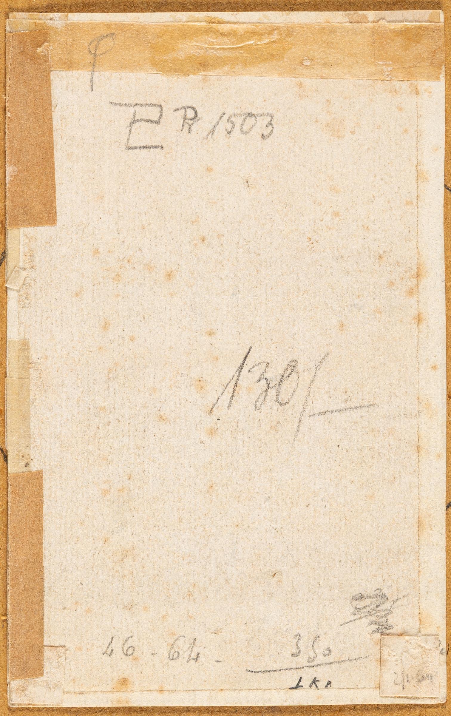 A fine Meder b impression, with the horizontal scratches parallel to the upper edge, yet before the appearance of the vertical scratch along the right edge. Thread margins. – A closed, 1 cm long tear in the upper right corner. Light foxing. Paper time-stained and slightly wavy along the upper edge due to mounting. Surface rubbing in the lower corners. Verso with former mount strip all around, otherwise in good condition.