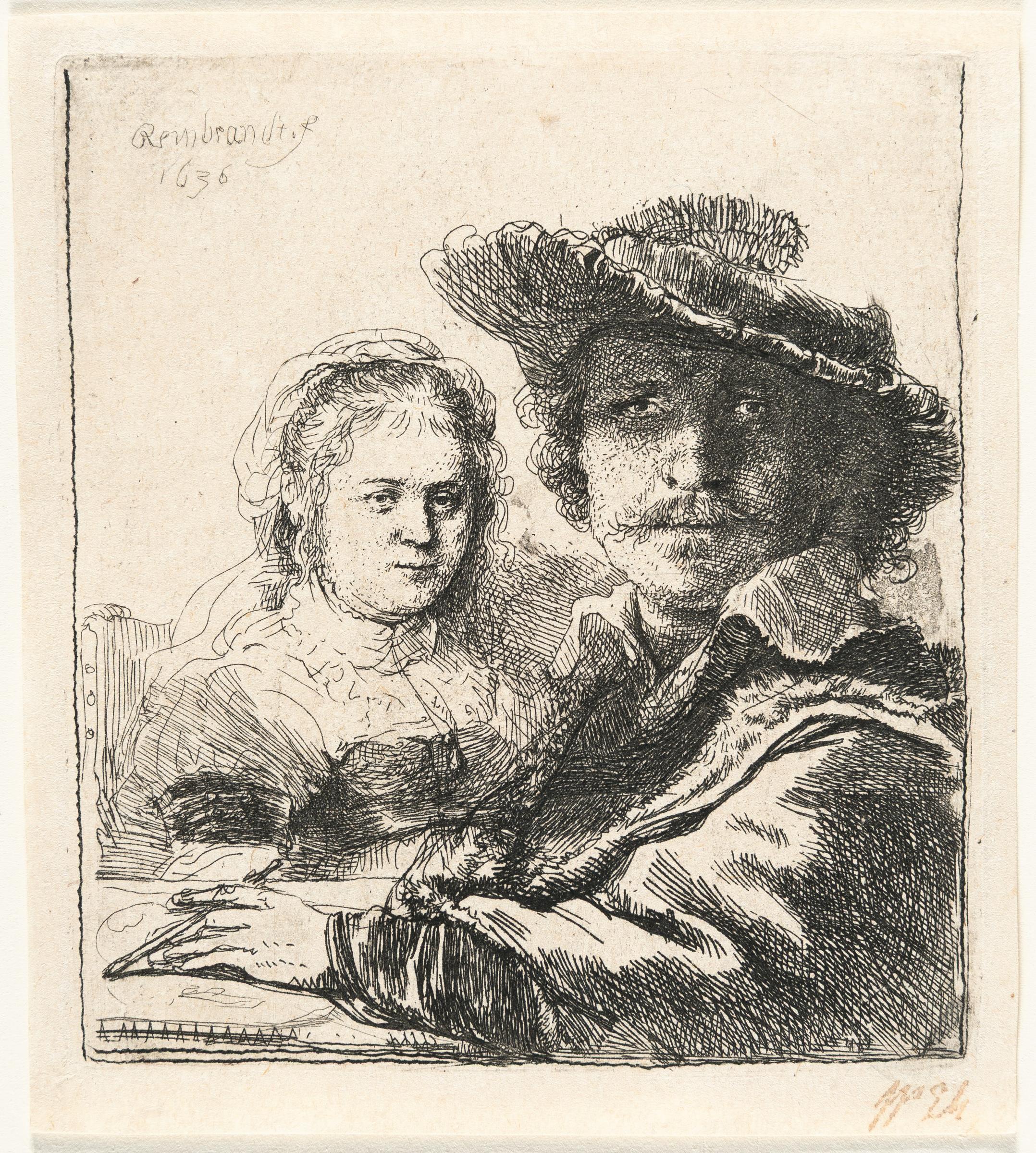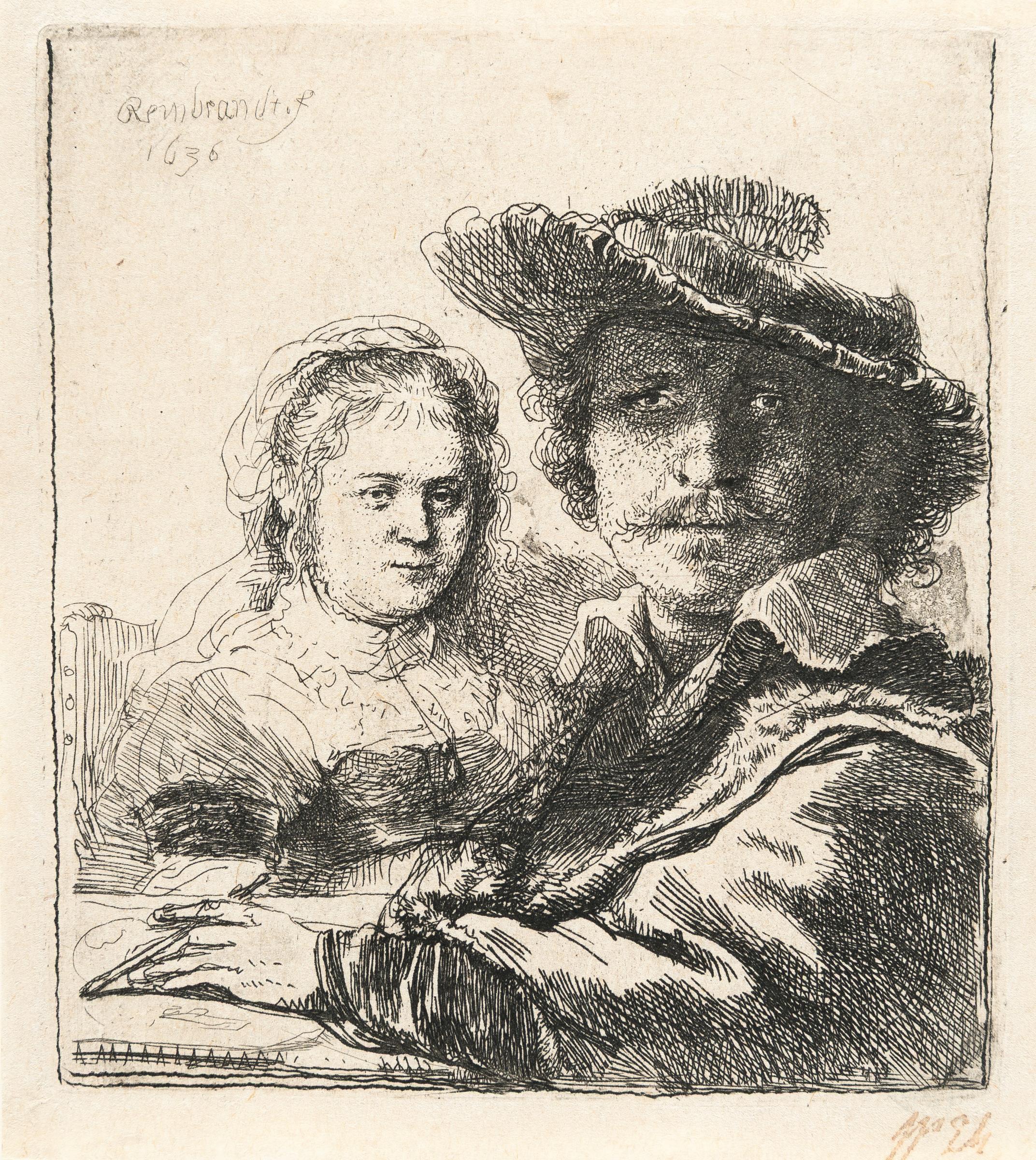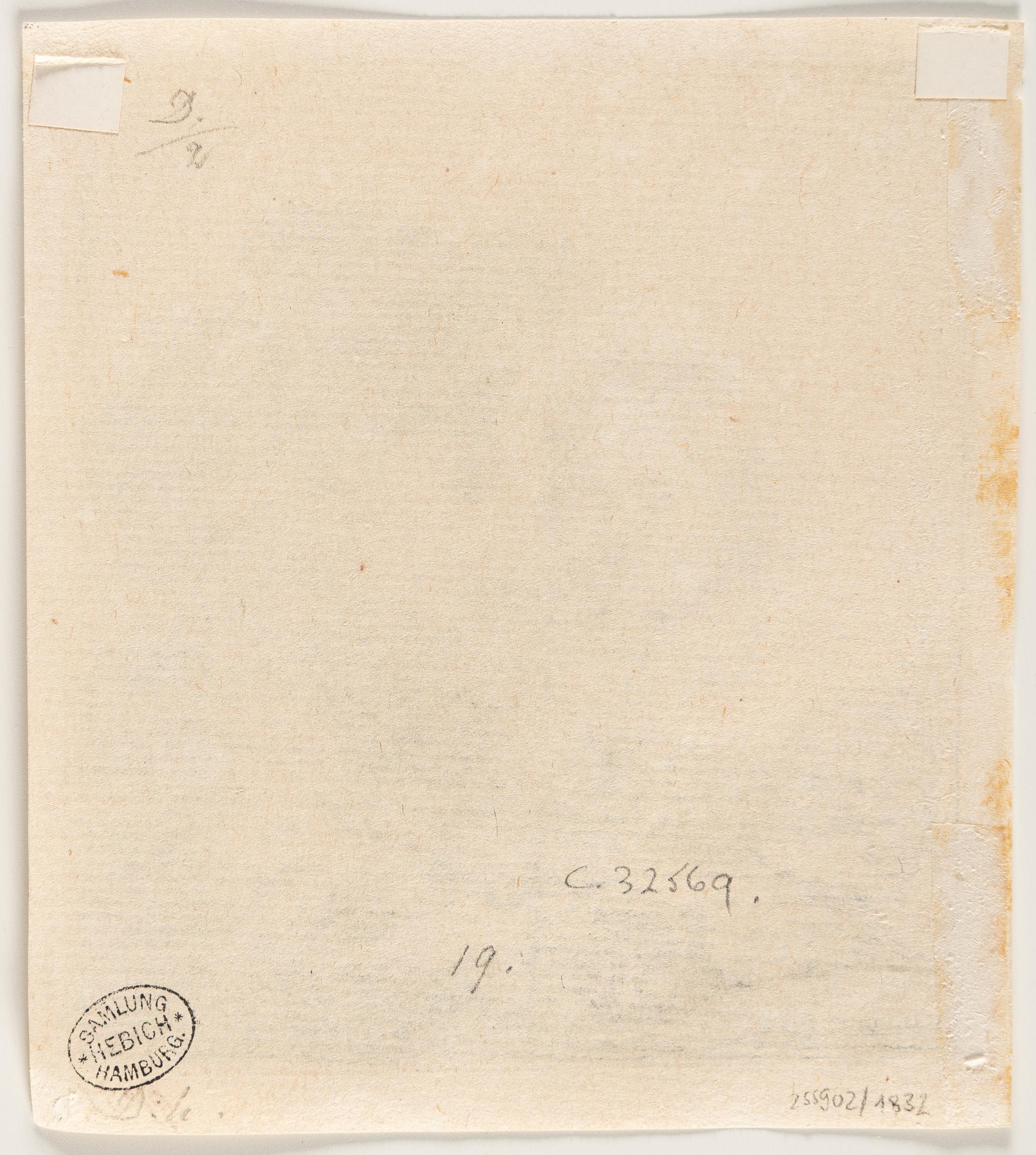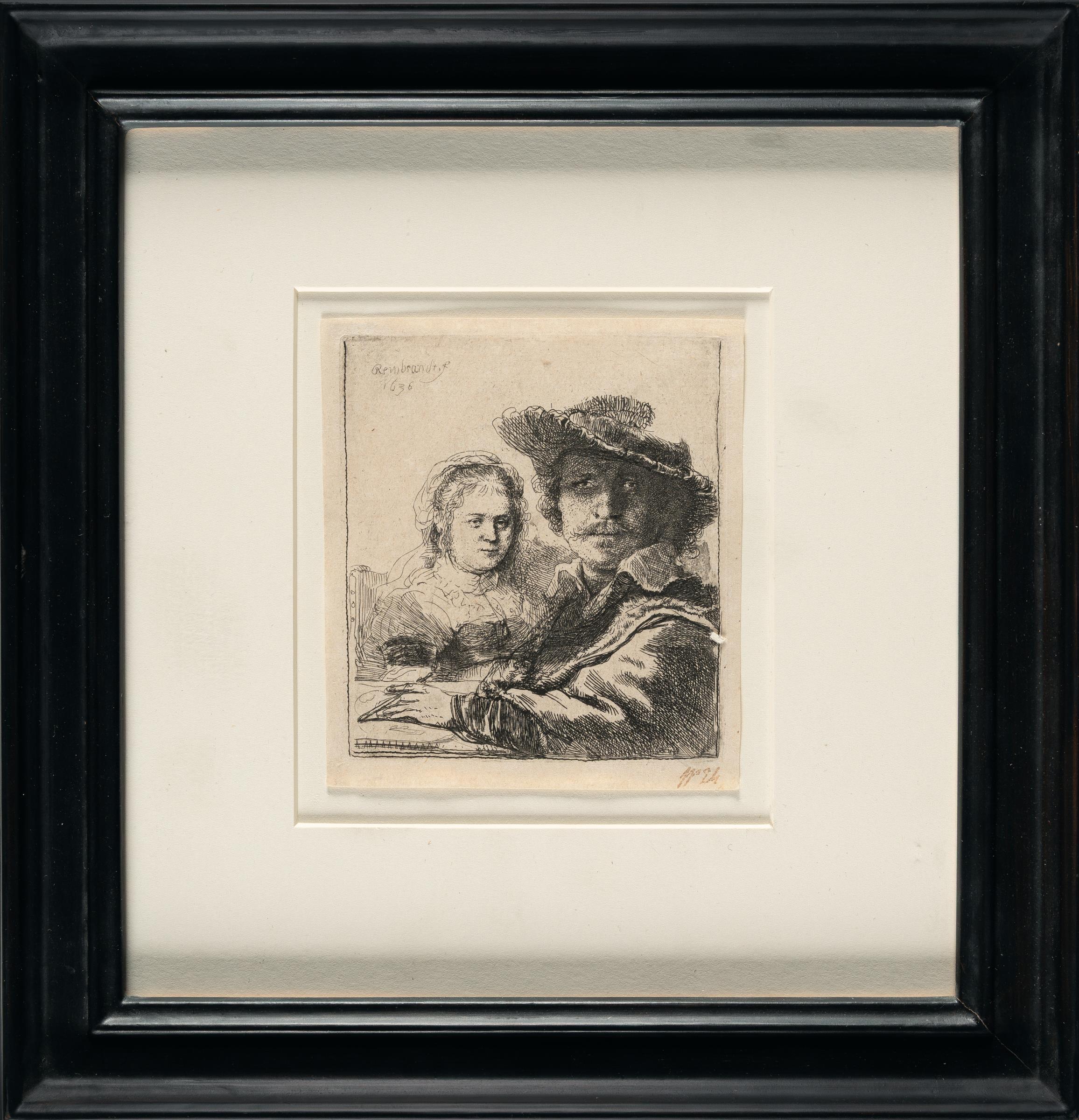 A very good, crisp impression with fine contrasts of the third state, with the false biting in the dark shadow beside the artist's cheek reworked. The left earlobe has been darkened with new lines. With even margins measuring up to 7 mm around the platemark. – An illegible inscription in brown ink at the bottom right. Verso, along the right edge, with remnants of previous mounting. Otherwise in very good condition.