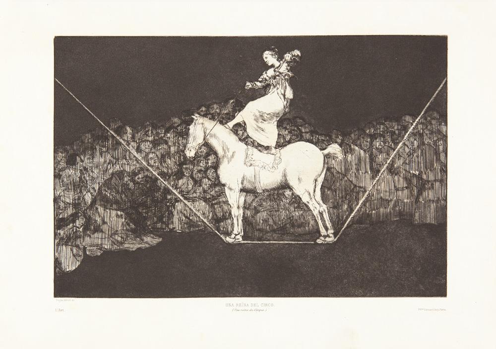 From the series: Los proverbios. With the inscription and a wide margin. One of four additional copies, first printed posthumously by François Liénard in 1877 and published in the magazine L'Art. The illustration was published under the title ‘Una reina de circo’. Only a few condition proofs and some posthumous trial proofs exist. Minor paper defects, verso with remnants of former mounting and recto in the upper margin, otherwise in good condition.