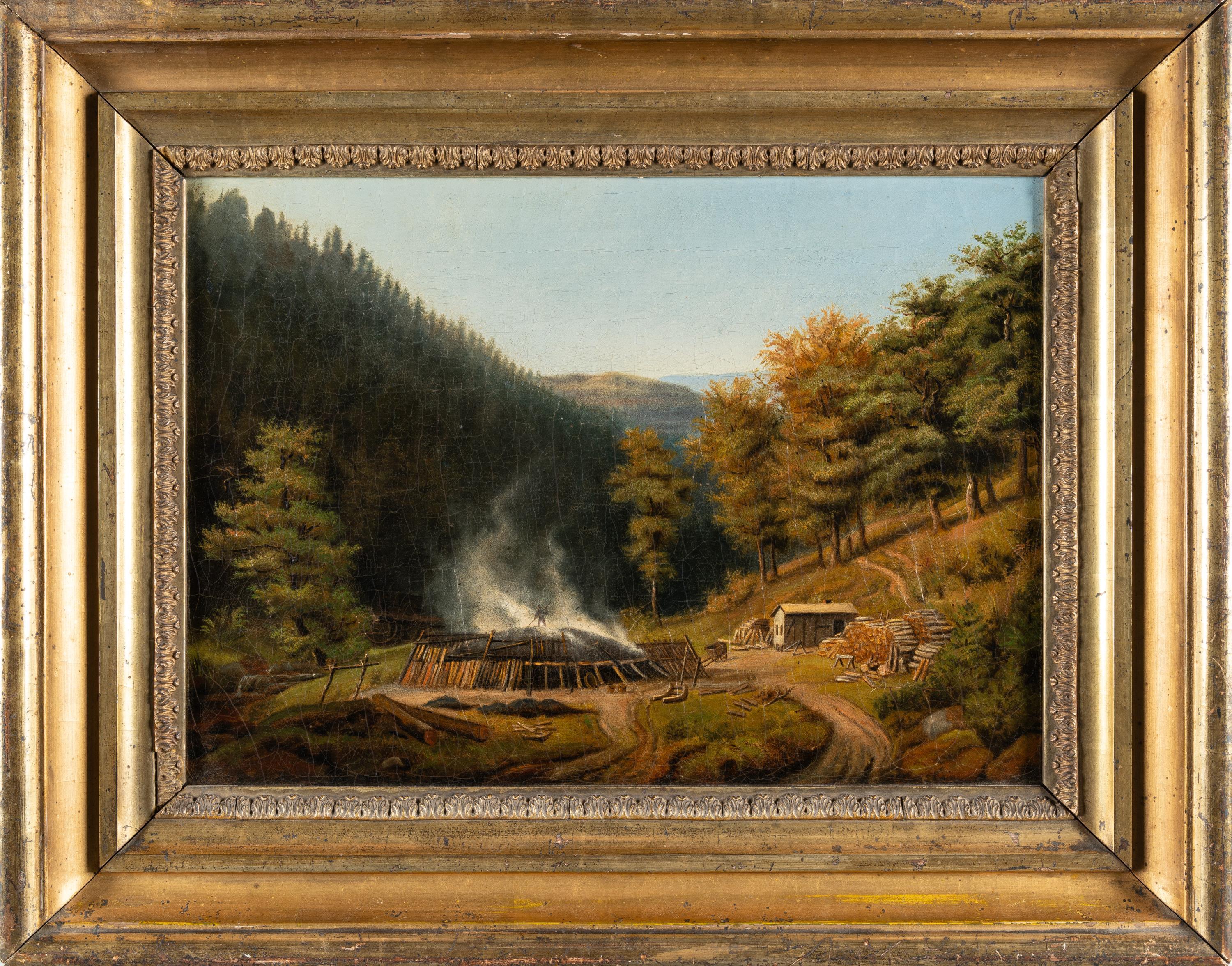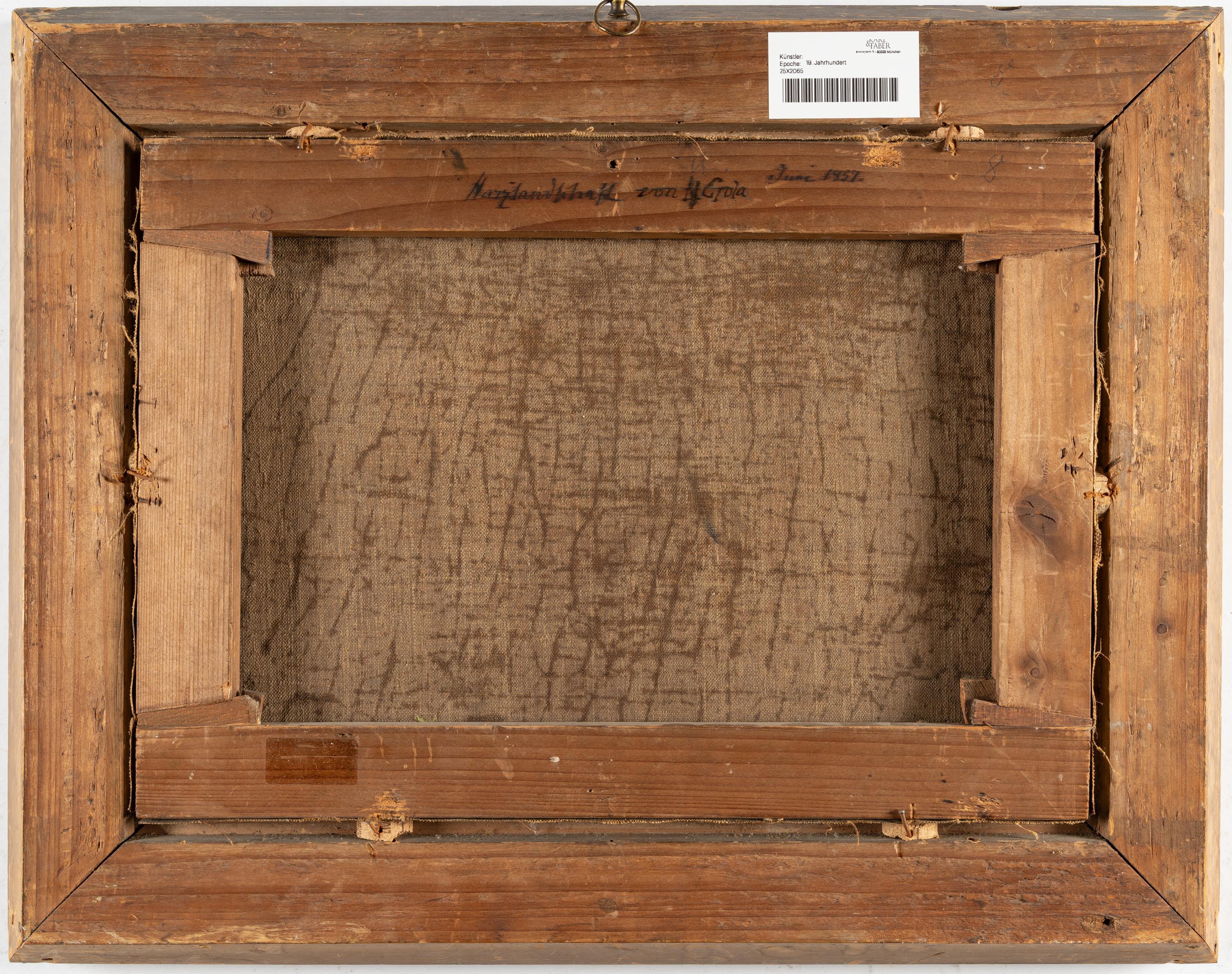 Additional Description Öl auf Leinwand. 1857. 27,5 x 39 cm. Rückseitig auf dem Keilrahmen bezeichnet „Harzlandschaft von Crola“ und datiert „Juni 1857“. Gerahmt.