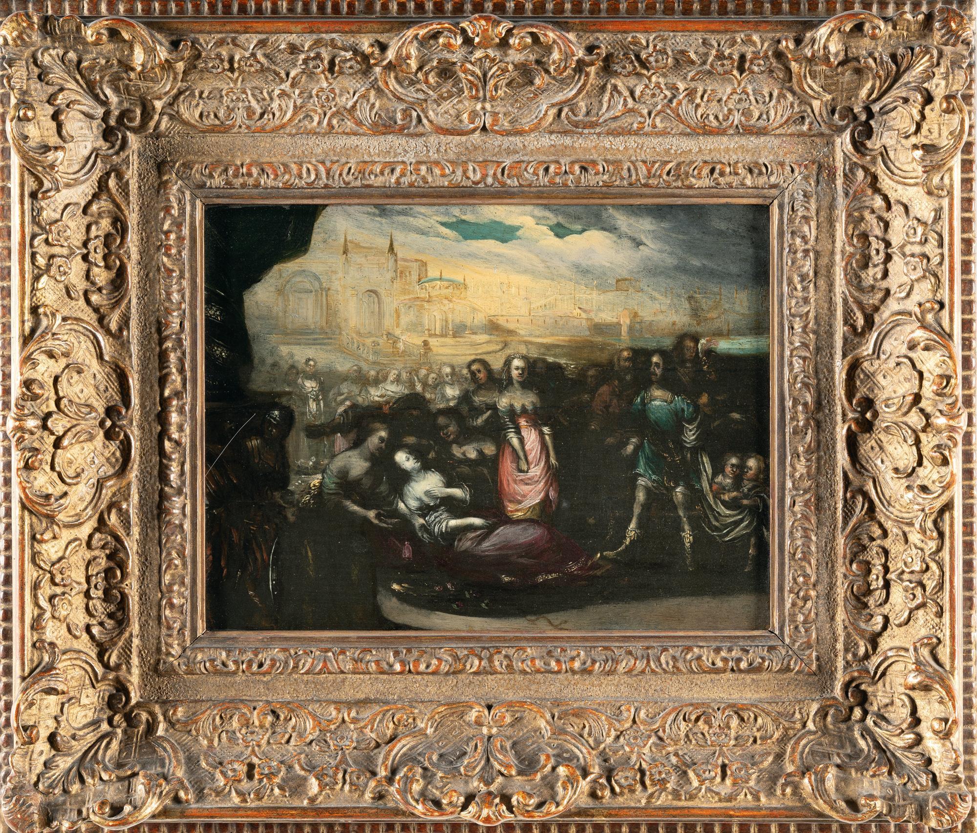 Flämisch Der Tod der Kleopatra Previous Lot overview Next Lot ID Lot 4009 Artist Flämisch Additional Description Öl auf Holz. 22,1 x 29,3 cm. Gerahmt. Technique Gemälde Provenance Seit Jahrzehnten in Familienbesitz, Berlin und Brandenburg; im Erbgang an die heutigen Besitzer, Bayern. Add favourite Status enquiry Share Description Feine Craquelélinien. Die Bildkanten rahmungsbedingt teils berieben, stellenweise unter geringfügigem Pigmentverlust. In altersgemäß guter Erhaltung.