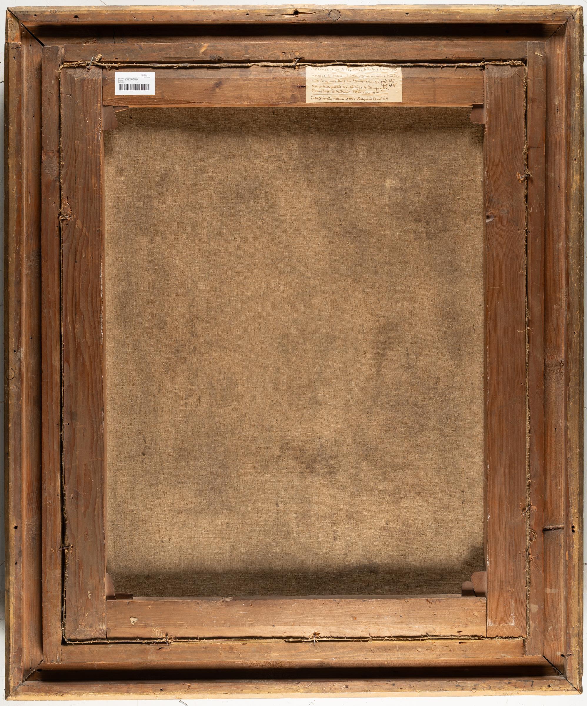 Öl auf Leinwand (doubliert). (2. Hälfte 17. Jh.). 89,8 x 72,5 cm. Auf der Keilrahmenrückseite mit Etikett, darauf Angaben zum Dargestellten, mit Zuschreibung an Philippe de Champaigne sowie der Notiz, dass das Bild 1941 in der Staatsgalerie Kassel restauriert wurde. Gerahmt.