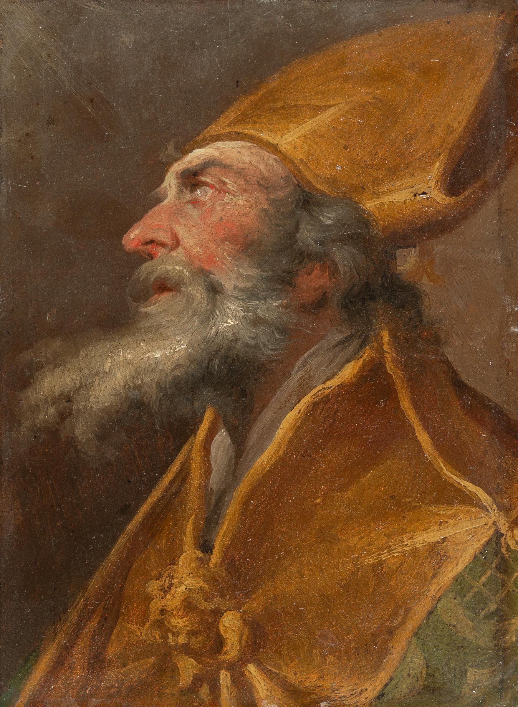 Italienisch Ein Bischof mit Mitra und Pluviale Previous Lot overview Next Lot ID Lot 4015 Artist Italienisch Öl auf Kupfer. (18. Jh.). 19,6 x 14,4 cm. Gerahmt. Provenance Laut Angaben des Besitzers ehemals Sammlung Adalbert Freiherr von Lanna (1836-1909), Prag. Öl auf Kupfer. (18. Jh.). 19,6 x 14,4 cm. Gerahmt. Description Die dünne Kupferplatte stellenweise minimal gewölbt. Die Plattenkanten rahmungsbedingt teils geringfügig berieben. In guter Erhaltung. Add to favourites Download PDF Share Öl auf Kupfer. (18. Jh.). 19,6 x 14,4 cm. Gerahmt. Description Die dünne Kupferplatte stellenweise minimal gewölbt. Die Plattenkanten rahmungsbedingt teils geringfügig berieben. In guter Erhaltung.
