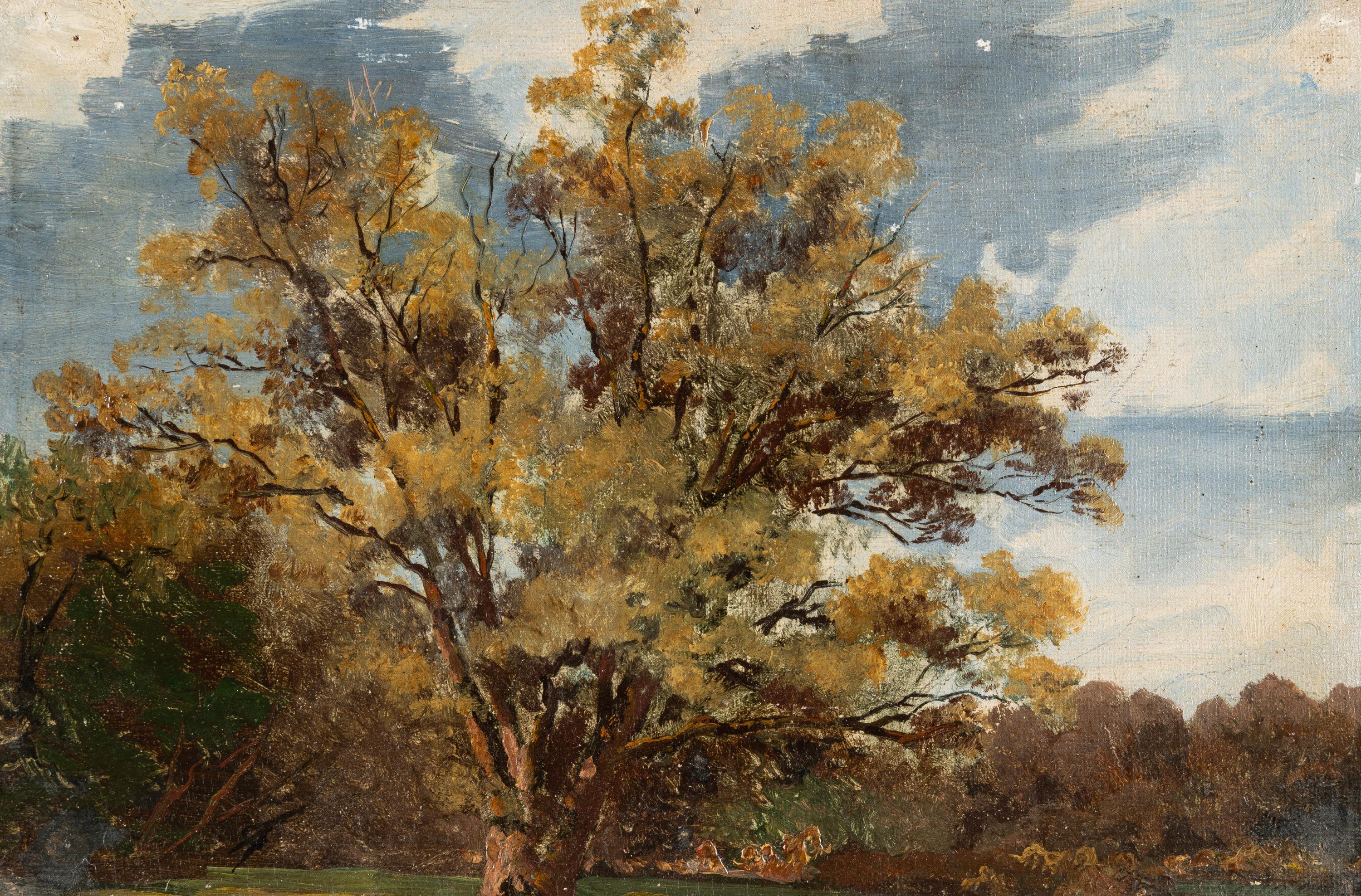 Öl auf Leinwand, über Bleistiftspuren, aufgezogen auf Pappe. 17,7 x 27 cm (Untersatz 19,2 x 28,5 cm). Unten rechts signiert und undeutlich datiert.