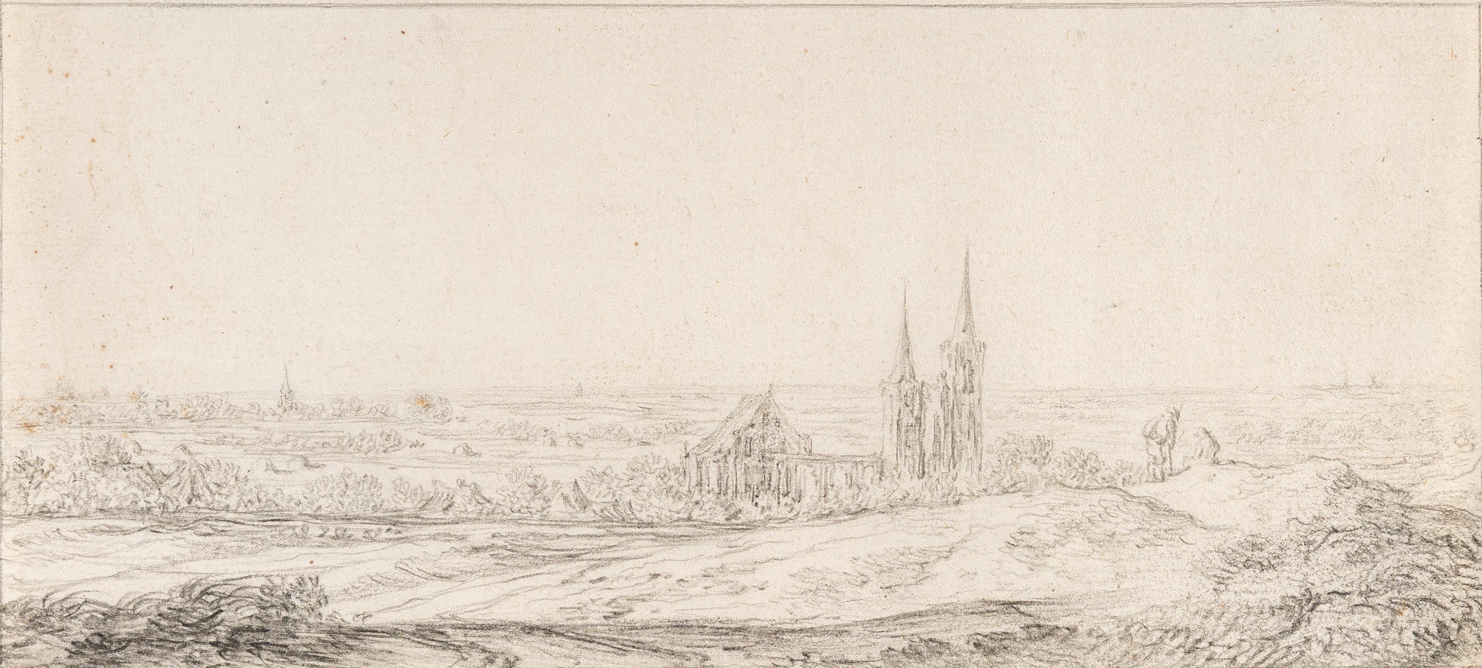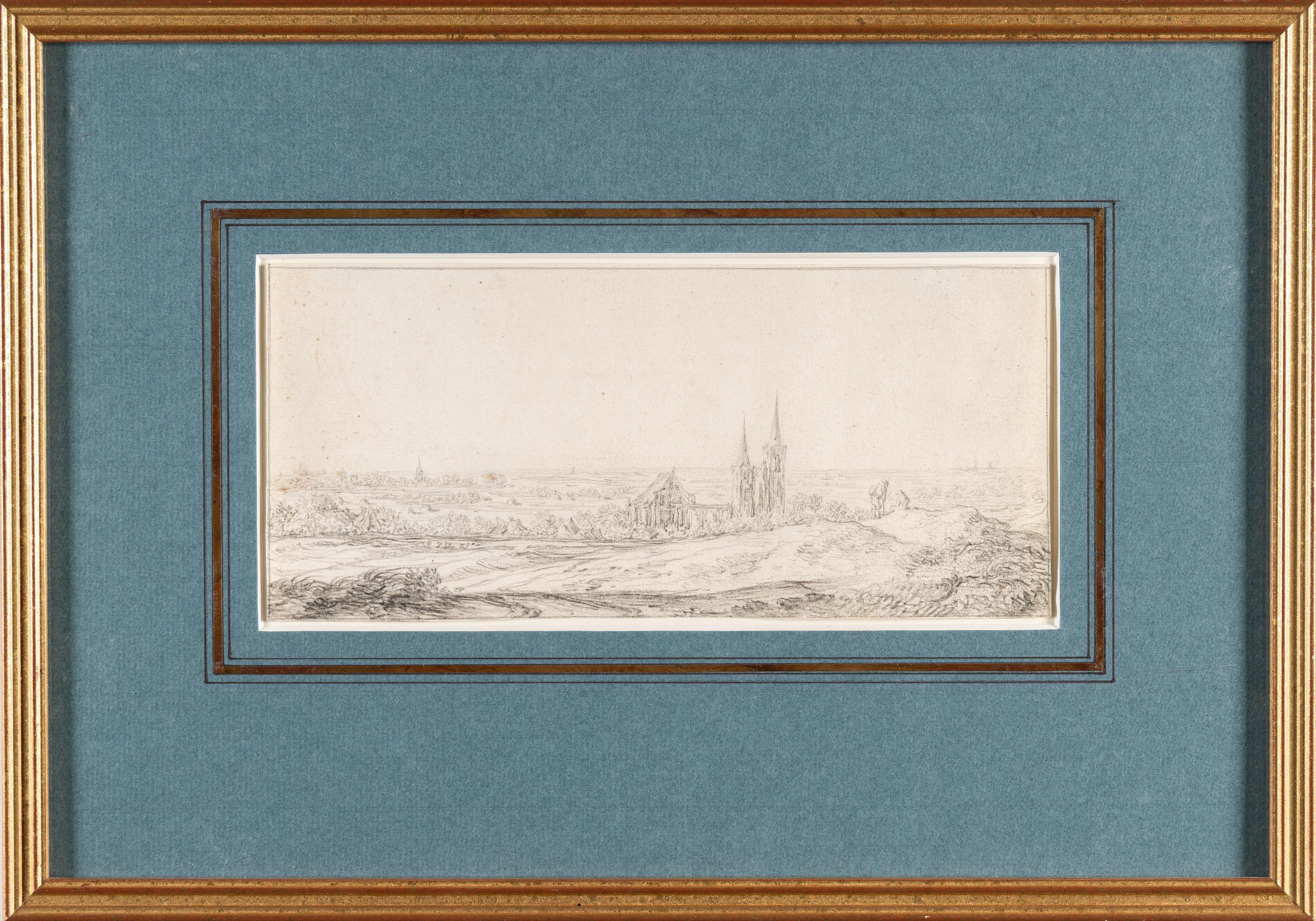 Schwarze Kreide, teils gewischt, auf Bütten. (Um 1650). 11 x 24,1 cm. Mit einer Einfassungslinie in schwarzer Kreide.
