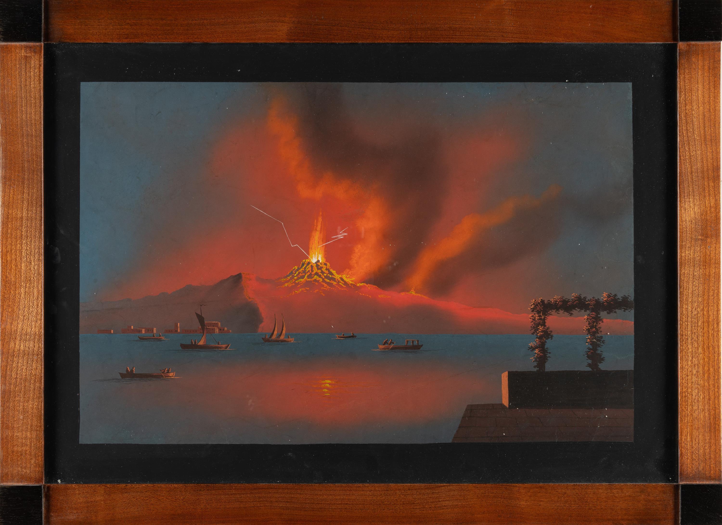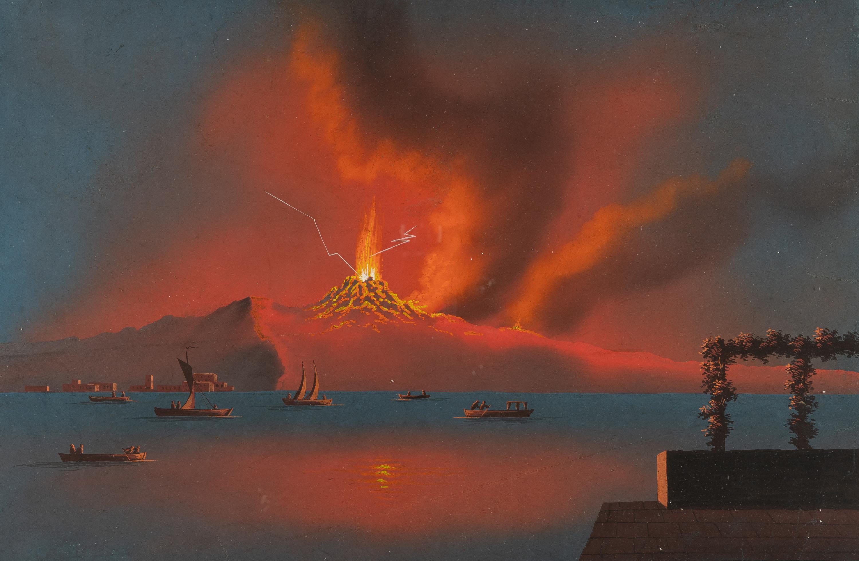 Nächtlicher Vesuvausbruch, begleitet von Blitzen