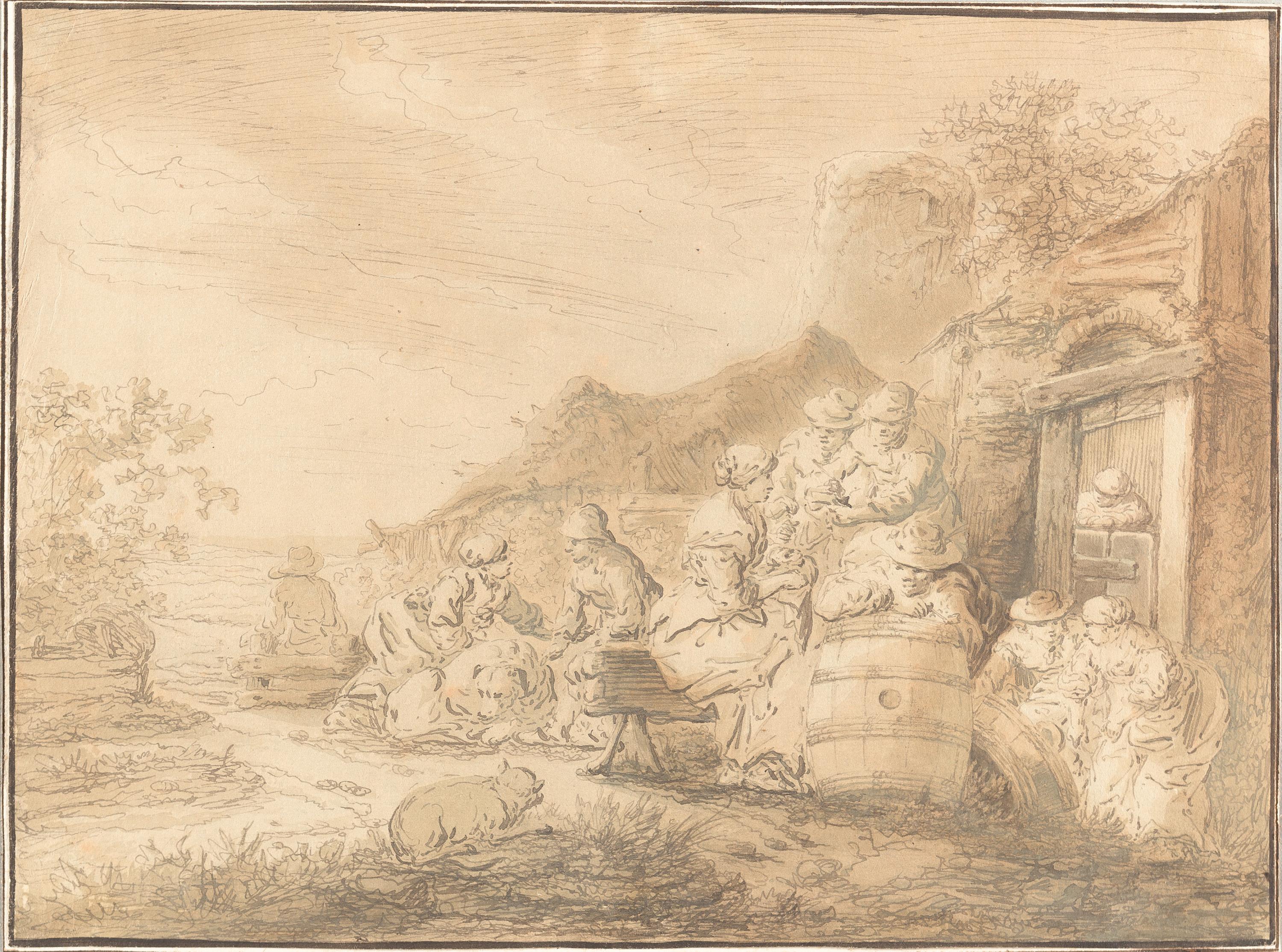 Feder in Braungrau, laviert, auf gelblichem Bütten. 24,1 x 33,2 cm. Mit einer Einfassungslinie in schwarzem Pinsel. Auf der Unterlage von alter Hand bezeichnet.
