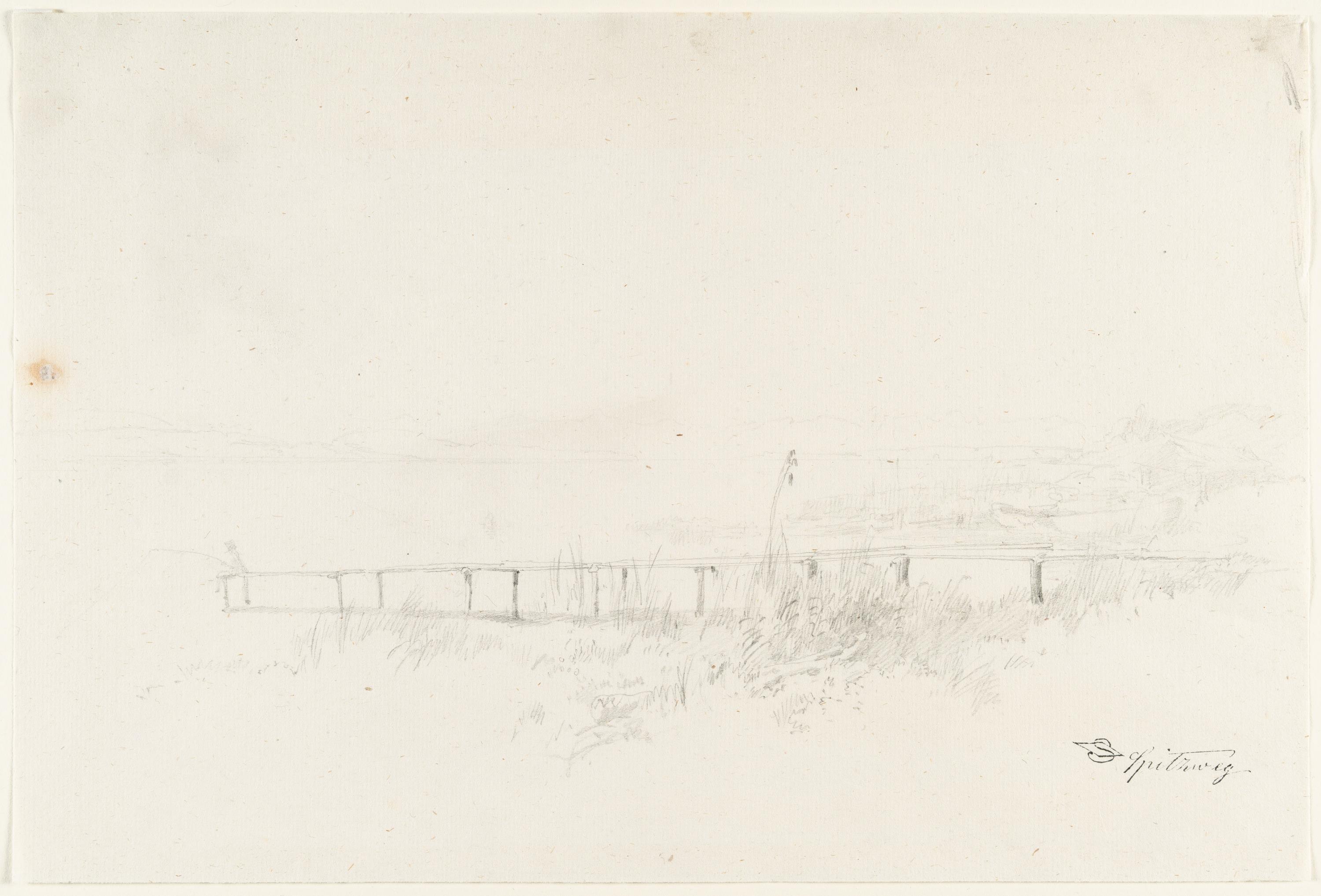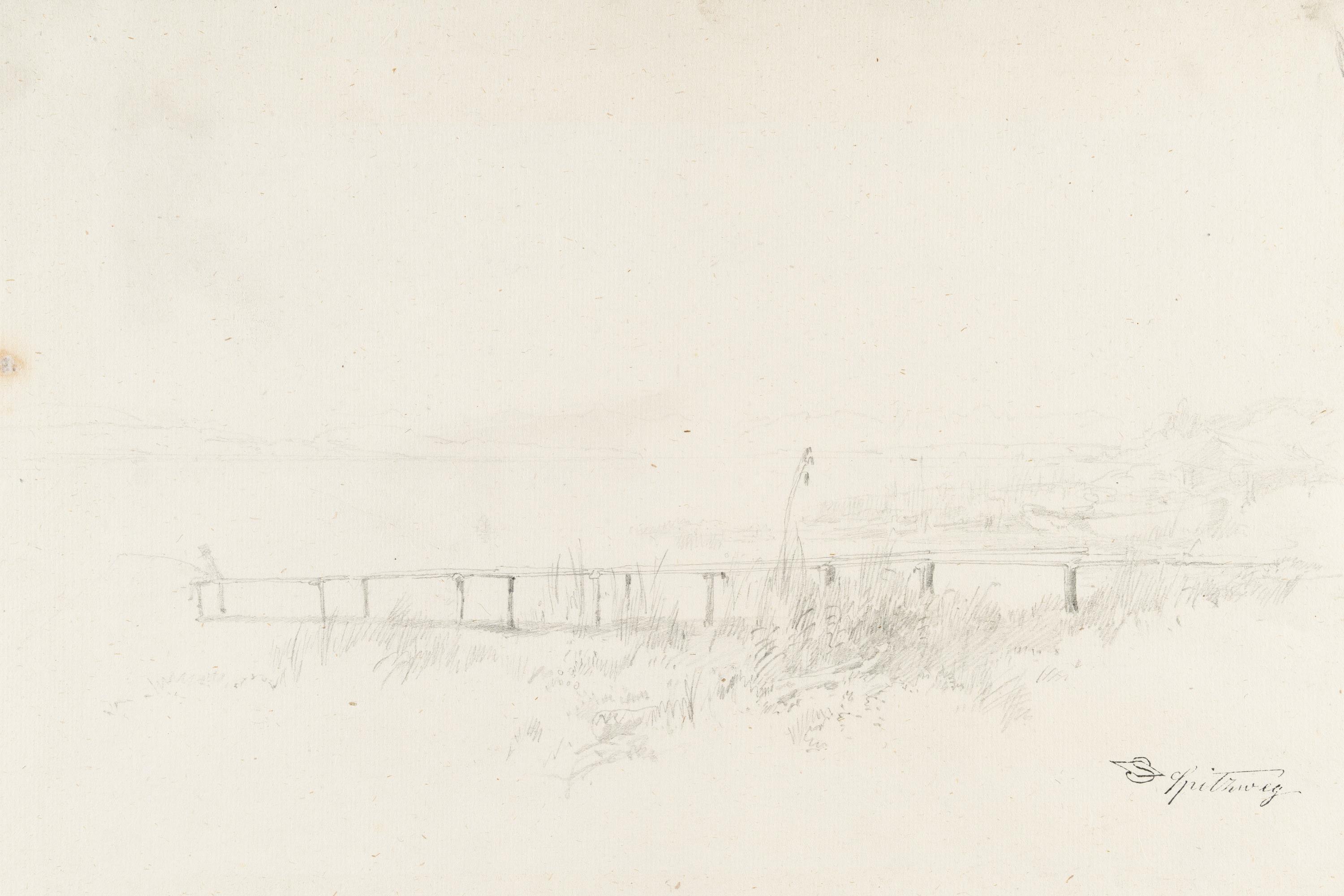 Vorstudie zum Gemälde „Am Ammersee bei Stegen“ (Wichmann 720, Bayerische Staatsgemäldesammlungen, Neue Pinakothek, München, Inv.-Nr. 8519). – Im linken Blattrand ein brauner Fleck. Zarte Griffspuren in den Ecken. In guter Erhaltung.