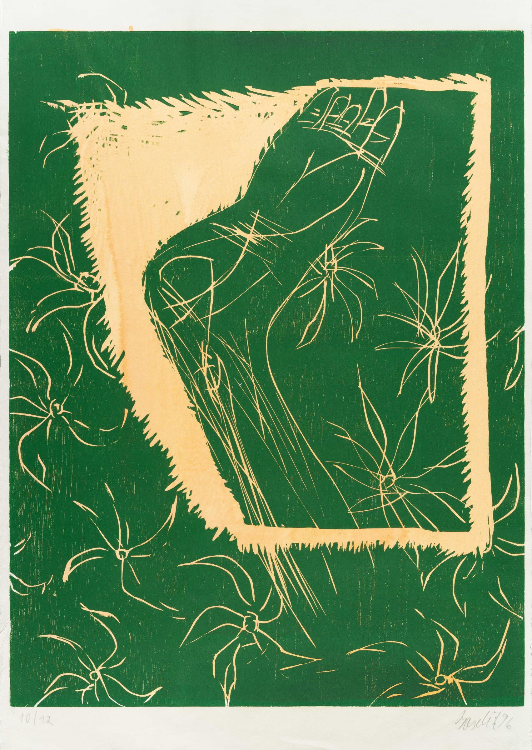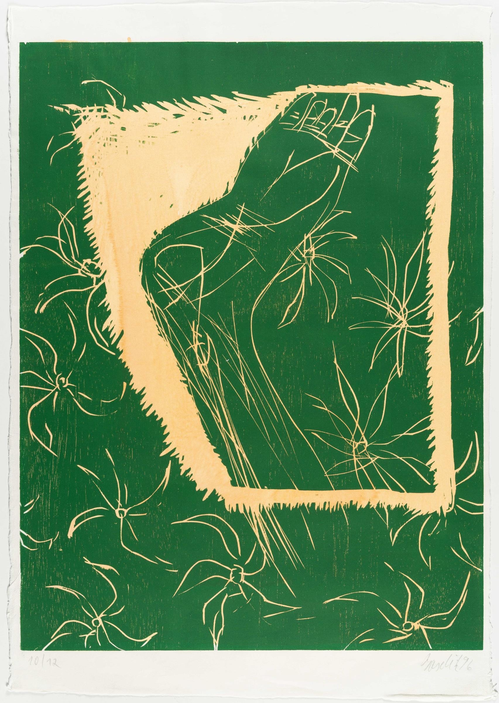 Farbiger Holzschnitt auf Japanbütten. (19)96. Ca. 85 x 65 cm (Blattgröße ca. 97,5 x 67,5 cm). Eines von 12 nummerierten Exemplaren. Signiert und datiert unten rechts.