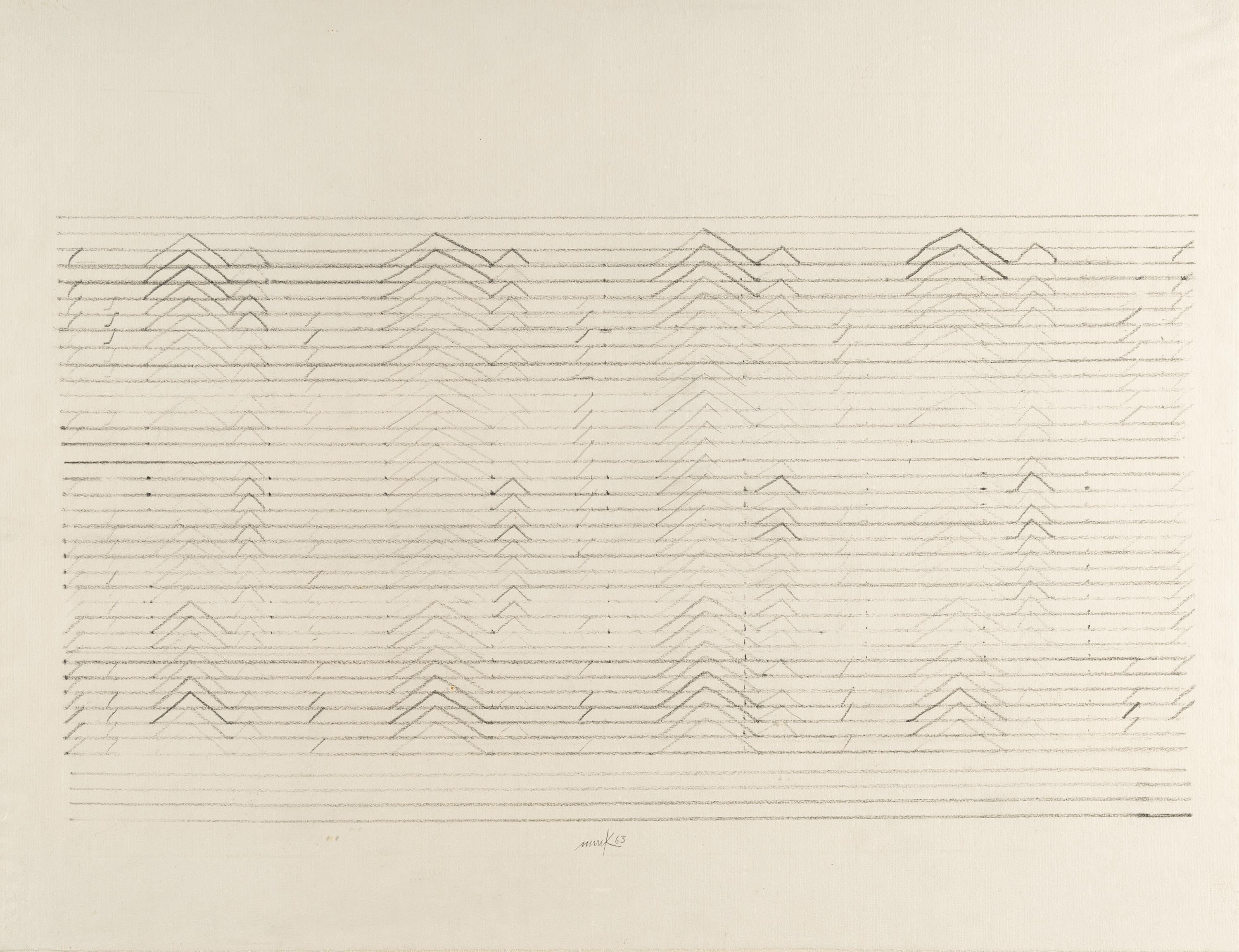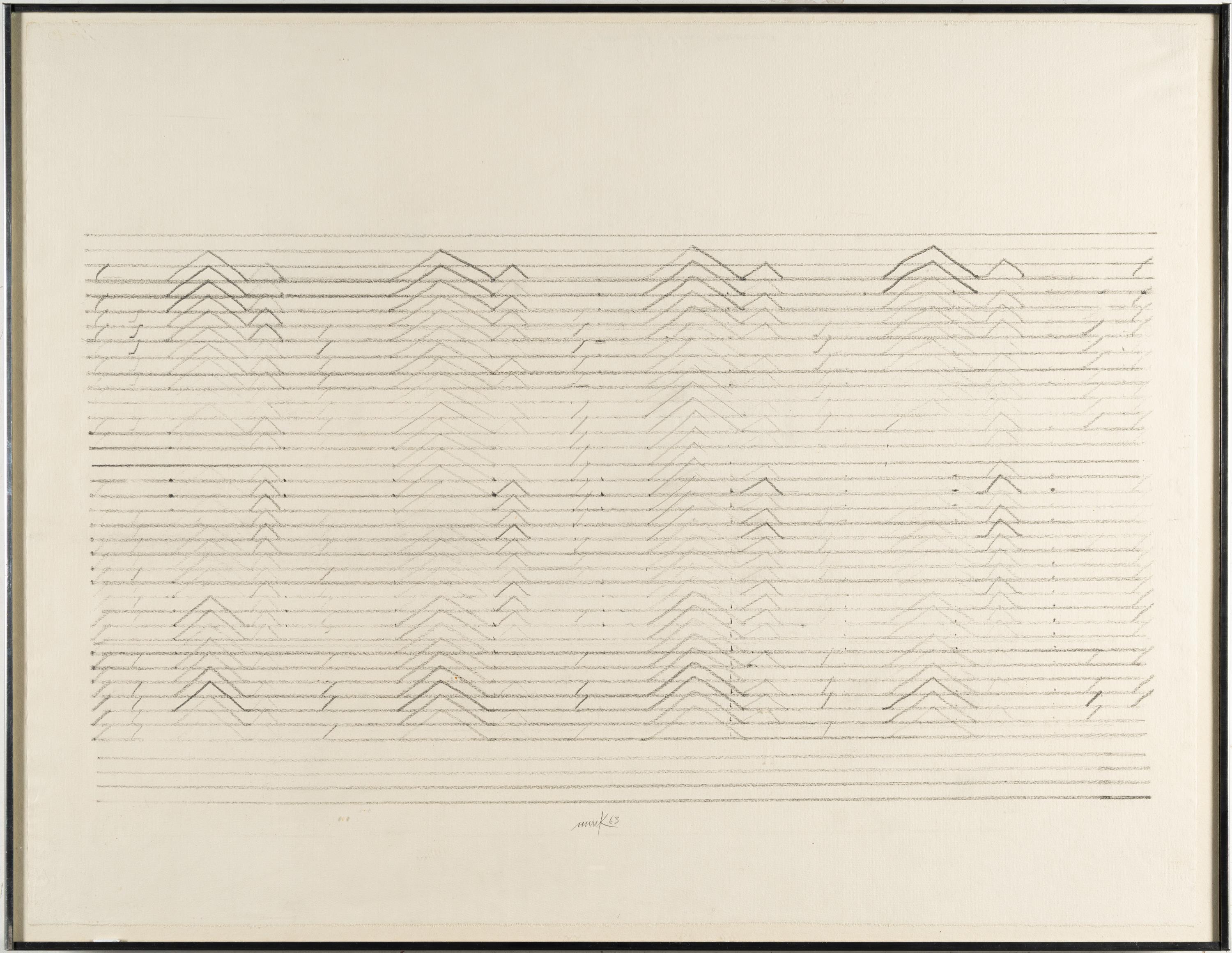 Bleistift auf feinem Bütten. In O.-Alurahmen. (19)63. Ca. 48,5 x 63 cm. Signiert und datiert unten mittig.
