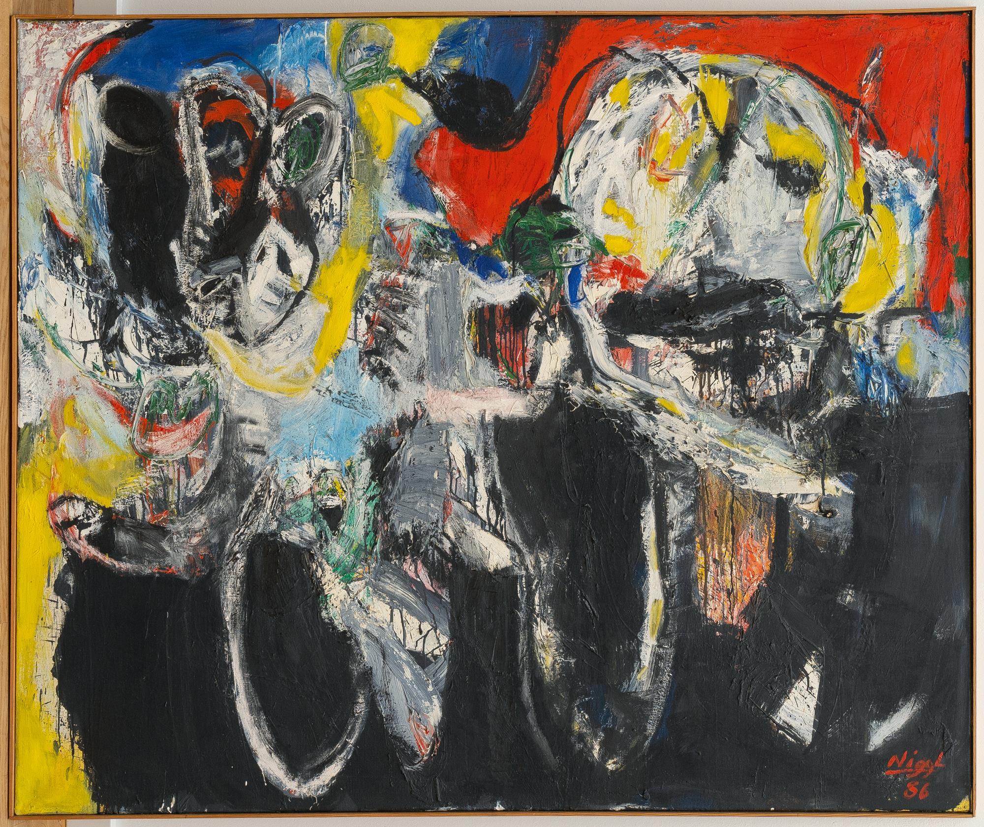 Öl auf Leinwand. (19)86. Ca. 125 x 150 cm. Signiert und datiert unten rechts. Verso nochmals datiert „11/86“ sowie betitelt und bezeichnet „N157“. In Atelierleisten.
