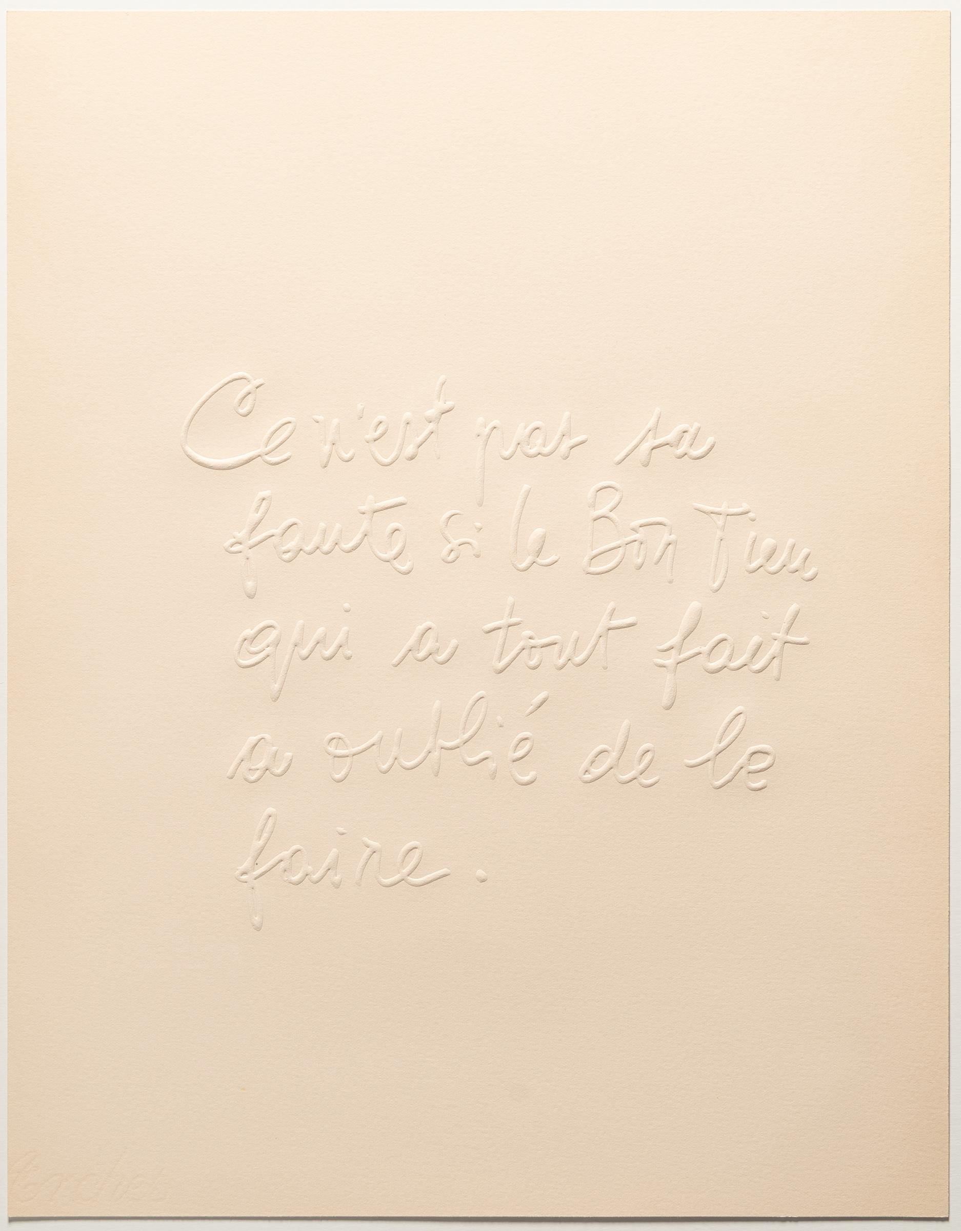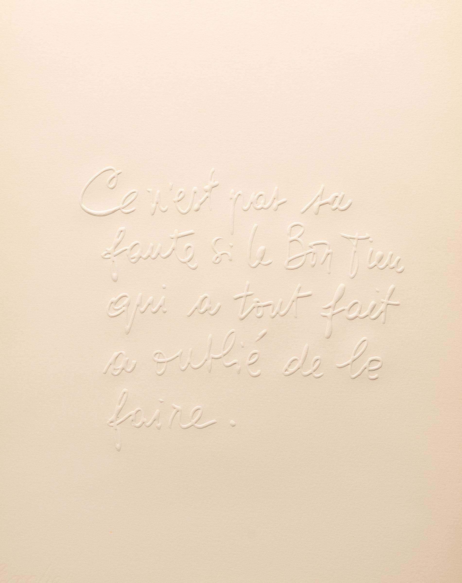 Portfolio von 26 Prägedrucken auf cremefarbenem Velin von Arches sowie mit Impressum und Titelblatt. In O.-HL.-Mappe und -Schuber mit typografischem Titel. (1966). Blattgröße ca. 41 x 32 cm. Herausgegeben von der Edition Cavallini, Venedig. Eines von 60 nummerierten Exemplaren. Signiert von Sorel Etrog und Claude Aveline auf dem Impressum sowie mit Widmung auf dem Titelblatt.