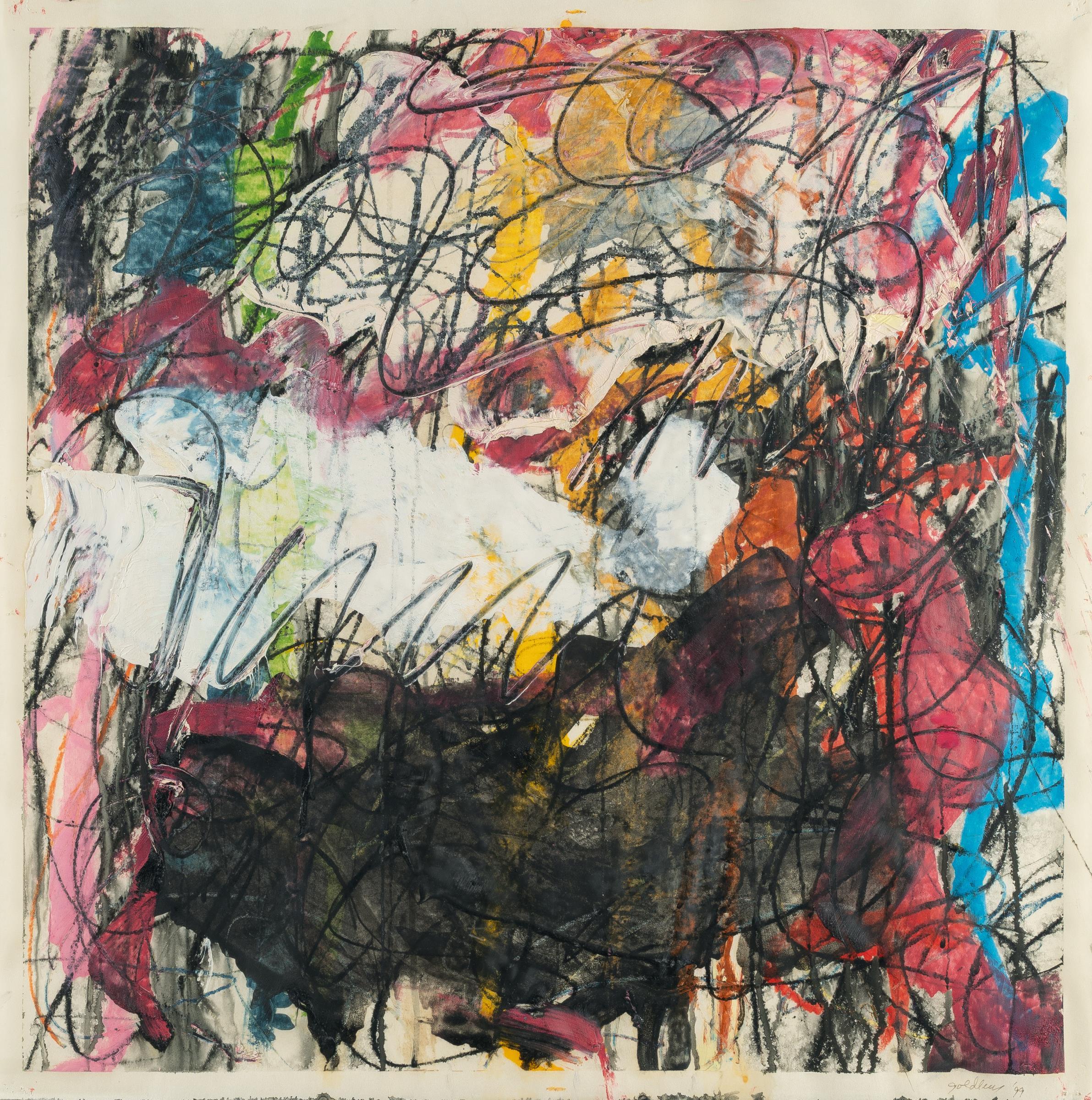 Mischtechnik mit Öl und Kreide auf Velin. (19)99. Ca. 69,5 x 69 cm. Signiert und datiert unten rechts.