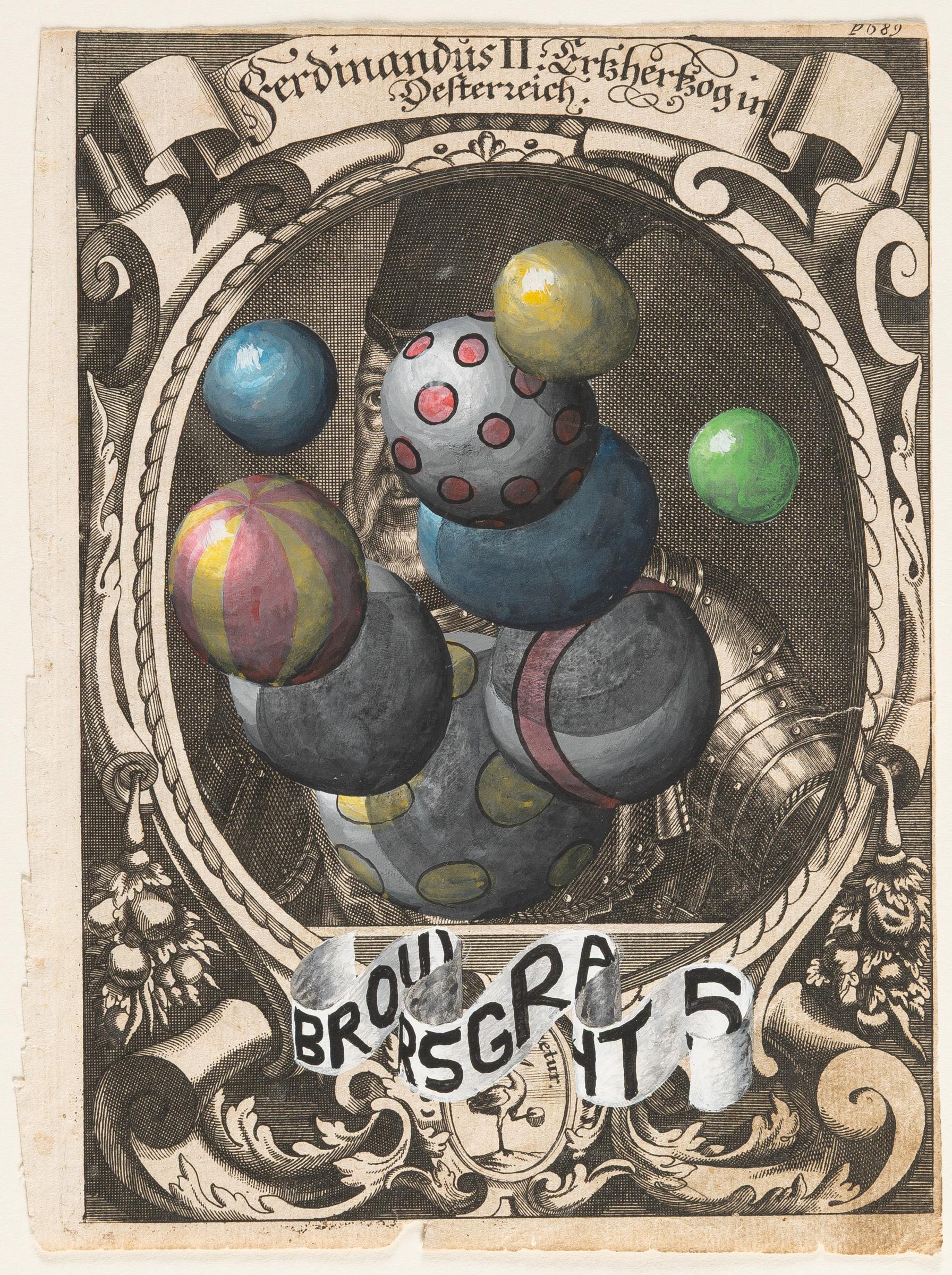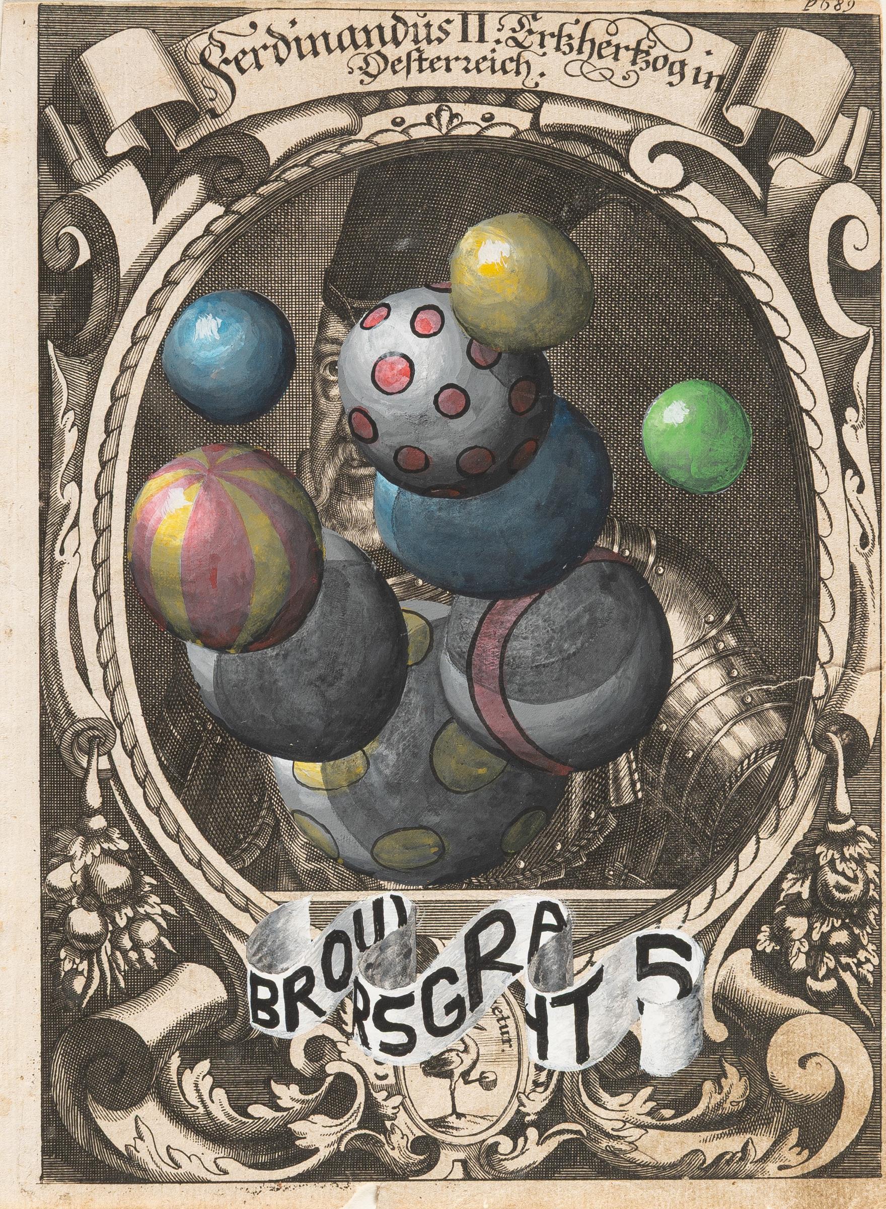 Gouache auf antikem Kupferstich auf Bütten. (2009). Ca. 18,5 x 13,5 cm. Verso auf dem hinterlegten Klebeband betitelt.