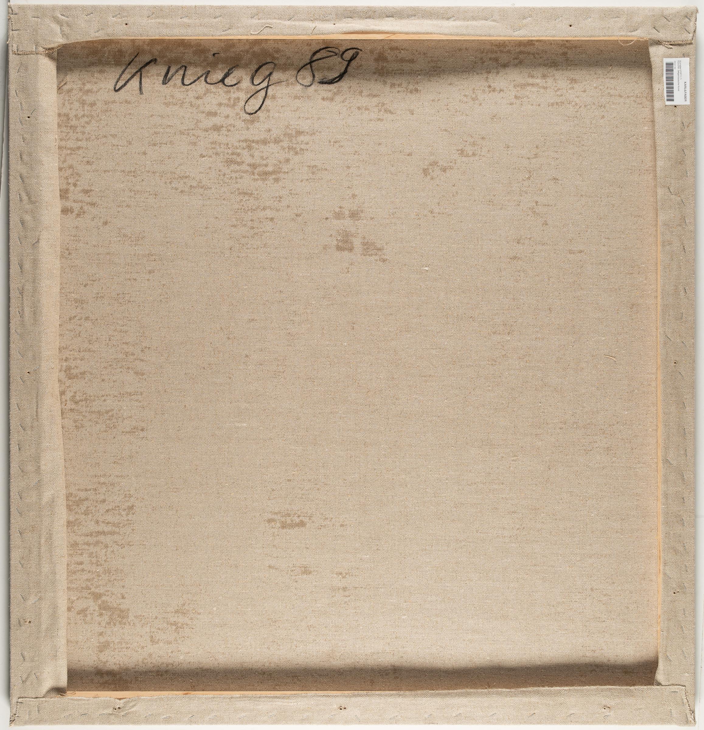 Dieter Krieg Untitled 2 Previous Lot overview Next Lot ID Lot 457 Artist Dieter Krieg Mischtechnik mit Öl auf festem Velin, auf Leinwand aufgezogen. (19)89. Ca. 96 x 91,5 cm. Verso auf der Leinwand signiert und datiert. Provenance Galerie manus presse, Stuttgart; Sammlung Hans Braun, Baden-Württemberg, 1990 bei Vorgenannter erworben. Mischtechnik mit Öl auf festem Velin, auf Leinwand aufgezogen. (19)89. Ca. 96 x 91,5 cm. Verso auf der Leinwand signiert und datiert. Add to favourites Request condition report Download PDF Share Mischtechnik mit Öl auf festem Velin, auf Leinwand aufgezogen. (19)89. Ca. 96 x 91,5 cm. Verso auf der Leinwand signiert und datiert.