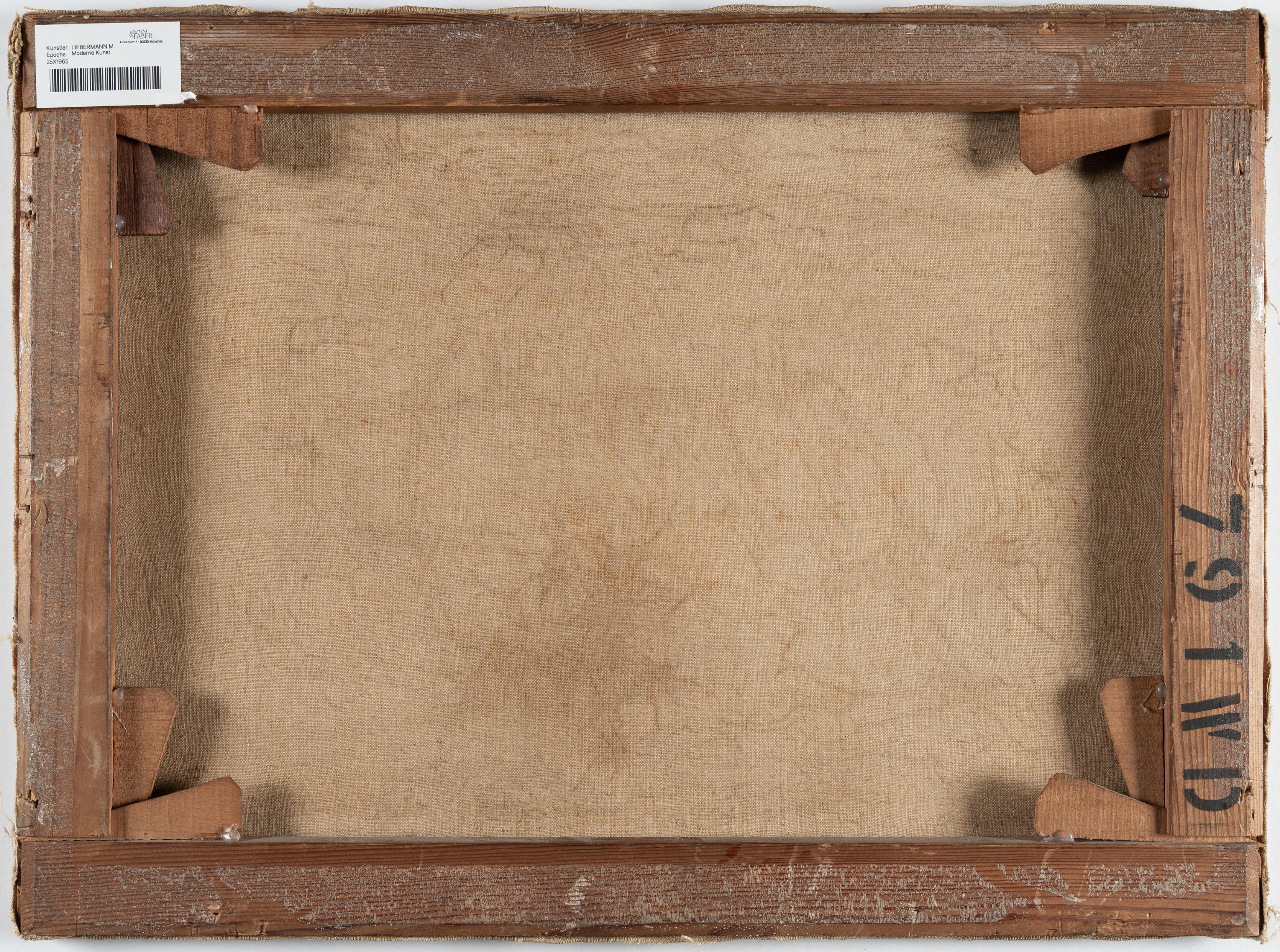 The Tiergarten, not far from Liebermann's Berlin city palace on Pariser Platz, was a place of constant inspiration for him and the main motif of his late work. In the period after the First World War, when this painting was created, he returned here again and again in the winter months. The Tiergarten offered the painter, who was no longer traveling due to his advanced age, plenty of motifs at any time of year. Thanks to his inexhaustible repertoire of staffage figures, which he varied freely and again and again, no two works were the same. The familiar, peaceful world of the urban park landscape provides a quiet, humane counter-world to the political and social upheaval of the 1920s. The light-heartedness of the skaters reflects the cheerful serenity that Liebermann seeks and finds in his late landscapes.