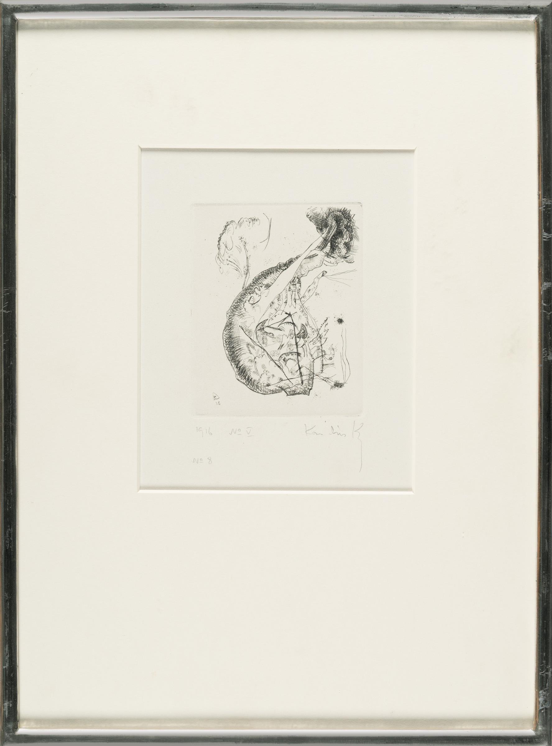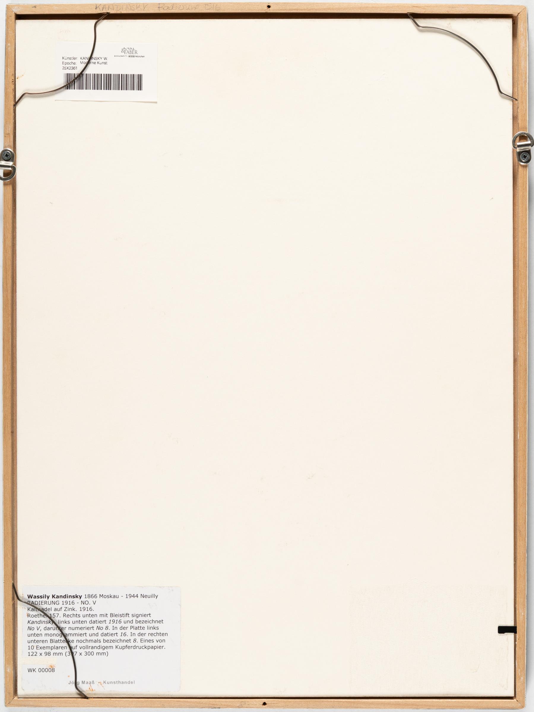 Before moving to Munich in 1896, Kandinsky had already spent a year managing an art print shop in Moscow and was therefore very familiar with the various printmaking techniques. Initially, however, he worked primarily with woodcuts, and it was not until 1913 that he produced his first etching. With etching, the line in all its nuances and subtleties - sometimes delicate, sometimes strong, sometimes individual, sometimes as a bundle of strokes - found its way into his graphic work.