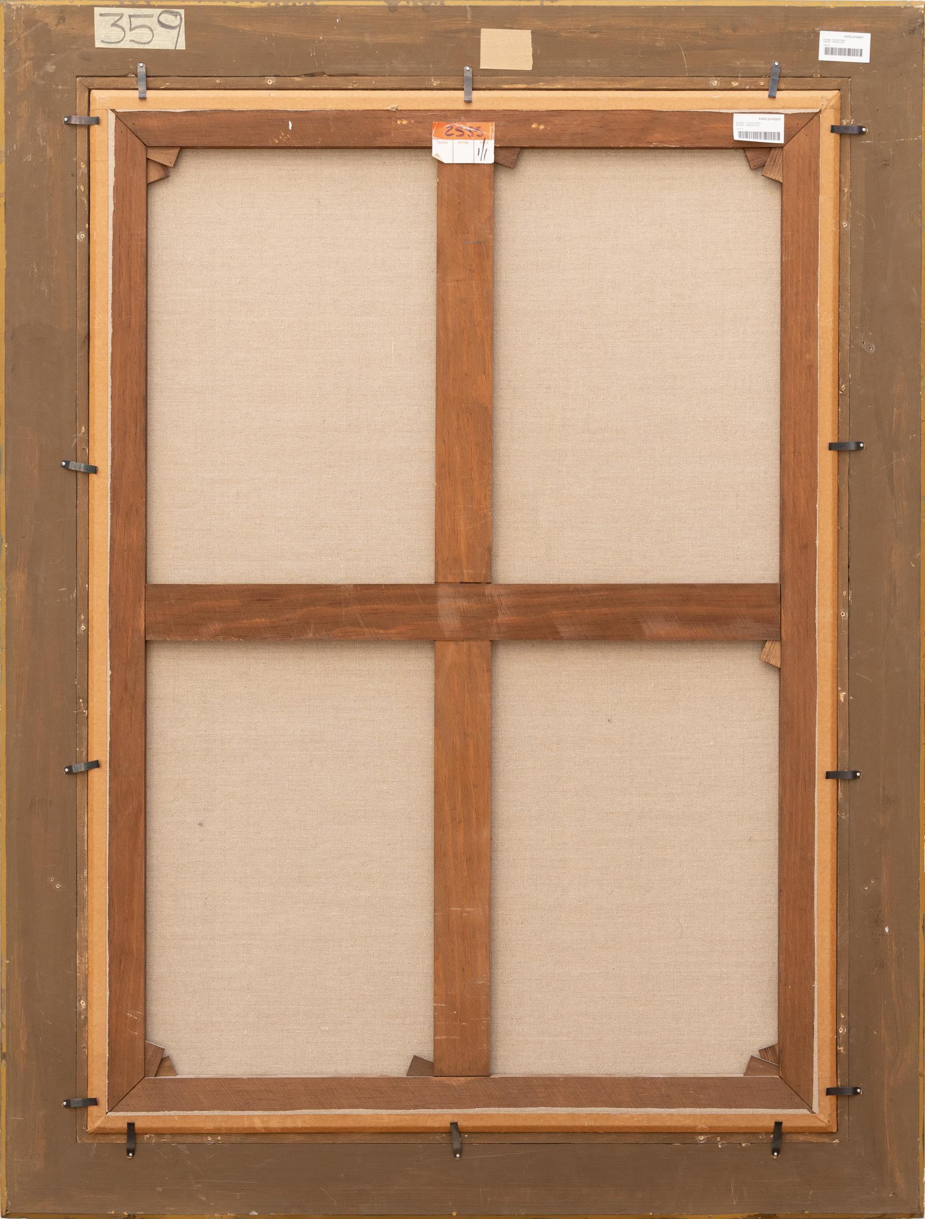 According to the catalog raisonné, the painting was signed, dated and titled "Calla Lilien 1917 HMPechstein" on the reverse of the canvas before it was doubled.