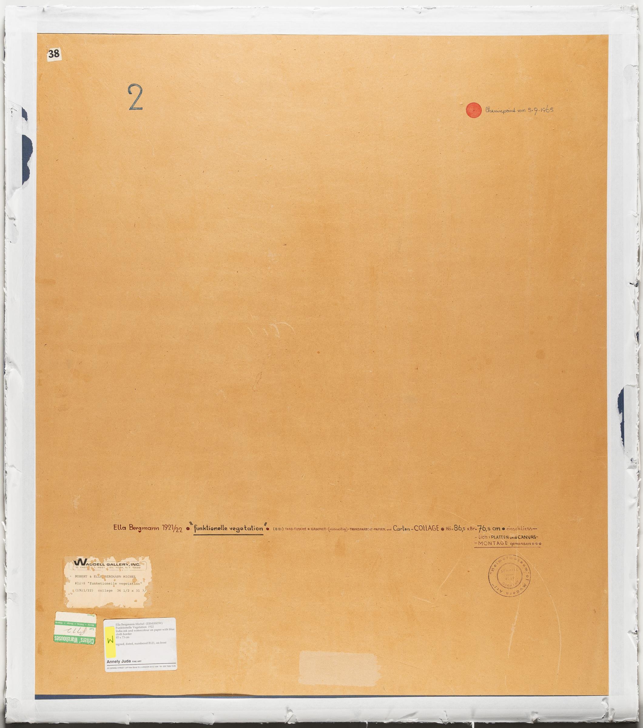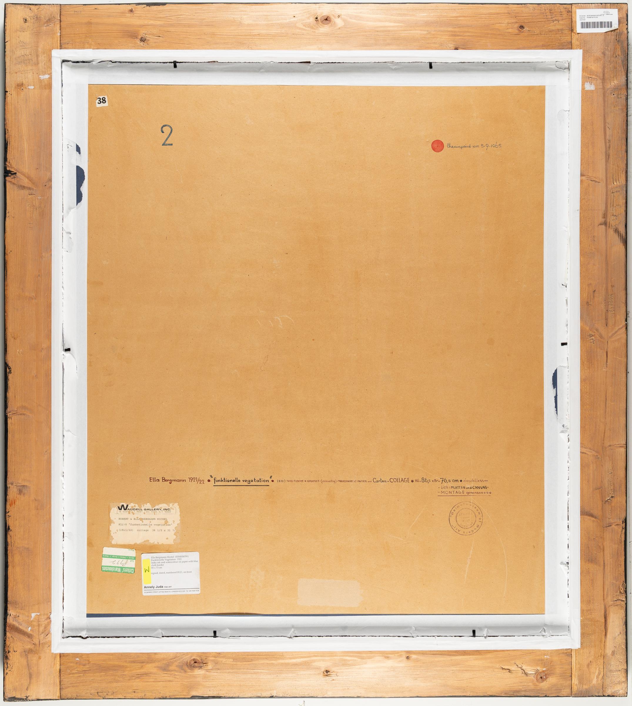 Alongside her husband Robert Michel, Kurt Schwitters, Willi Baumeister and László Moholy-Nagy, Ella Bergmann-Michel, known to friends as EBM for short, was one of the most important protagonists of the avant-garde and a pioneer of collage. The artist couple Bergmann/Michel met in 1917 while studying at the University of Fine Arts in Weimar and from then on worked closely together for the rest of their lives. For a short time, they worked at the newly founded Bauhaus, but soon settled in the "Schmelz" in the Taunus, an old paint mill in Michel's birthplace, which they later called the "Heimatmuseum of Modern Art". They became close friends with Johannes Mohlzahn and Kurt Schwitters as well as the photographers Martha Hoepffner and Ilse Bing. In addition to her extremely varied artistic work, Ella Bergmann-Michel worked as a commercial artist, photographer and documentary filmmaker and produced various interior designs. In the mid-1920s, she was involved in the social reform movement "das neue frankfurt", where she headed the "Arbeitsgemeinschaft für neuen Film/Liga für unabhängigen Film" together with Paul Seligmann from 1930. Due to the political developments of the 1930s, the artist couple largely withdrew from the public art scene. To support their family, Robert Michel ran a fish farm at the Schmelzmühle, while Ella Bergmann-Michel farmed and reared small livestock. The couple only resumed their artistic activities after the end of the Second World War. Thanks to the exhibition "Pioneers of Collage" in Leverkusen in 1963, the life's work of the artist couple Bergmann/Michel was rediscovered and made known.