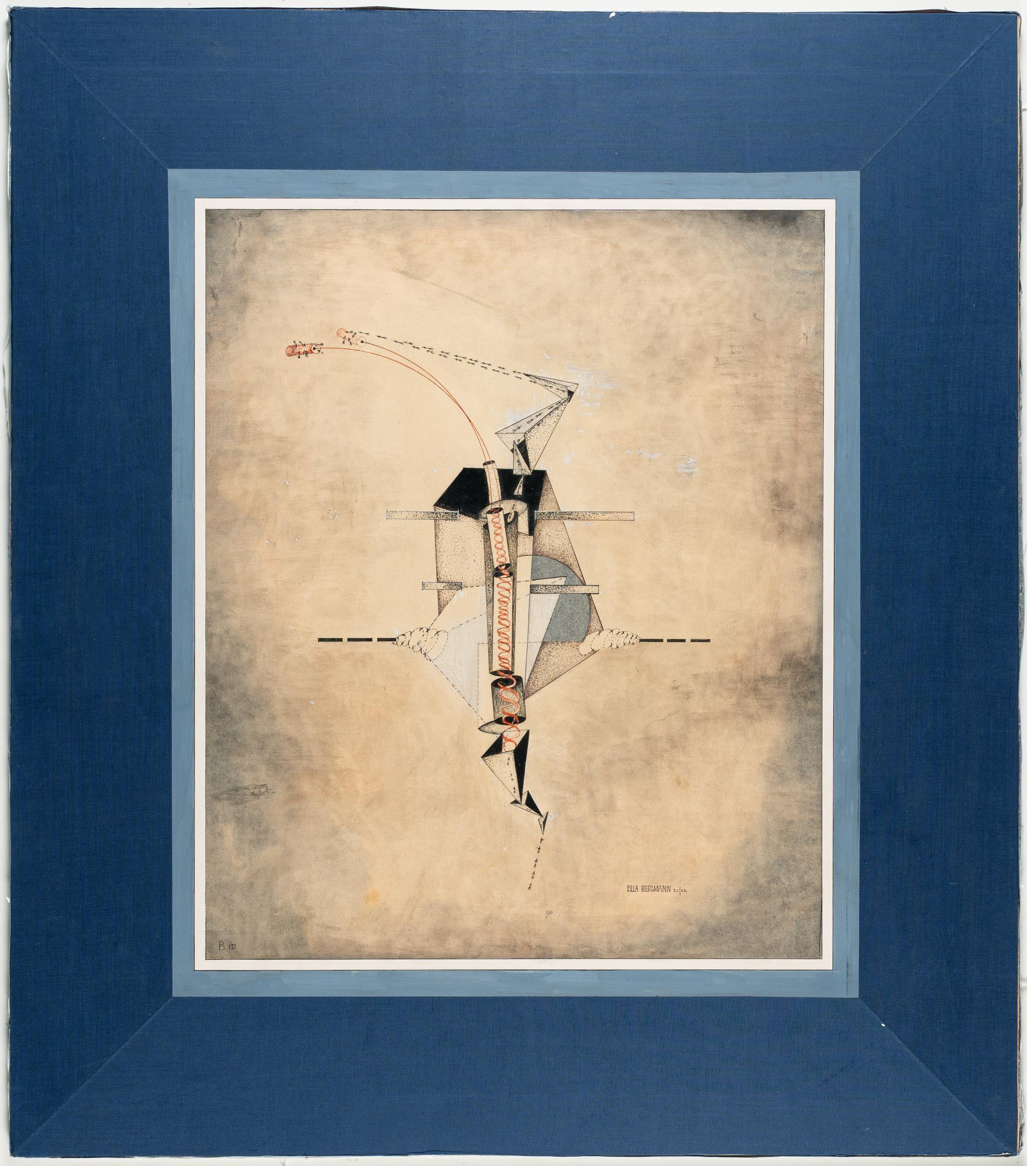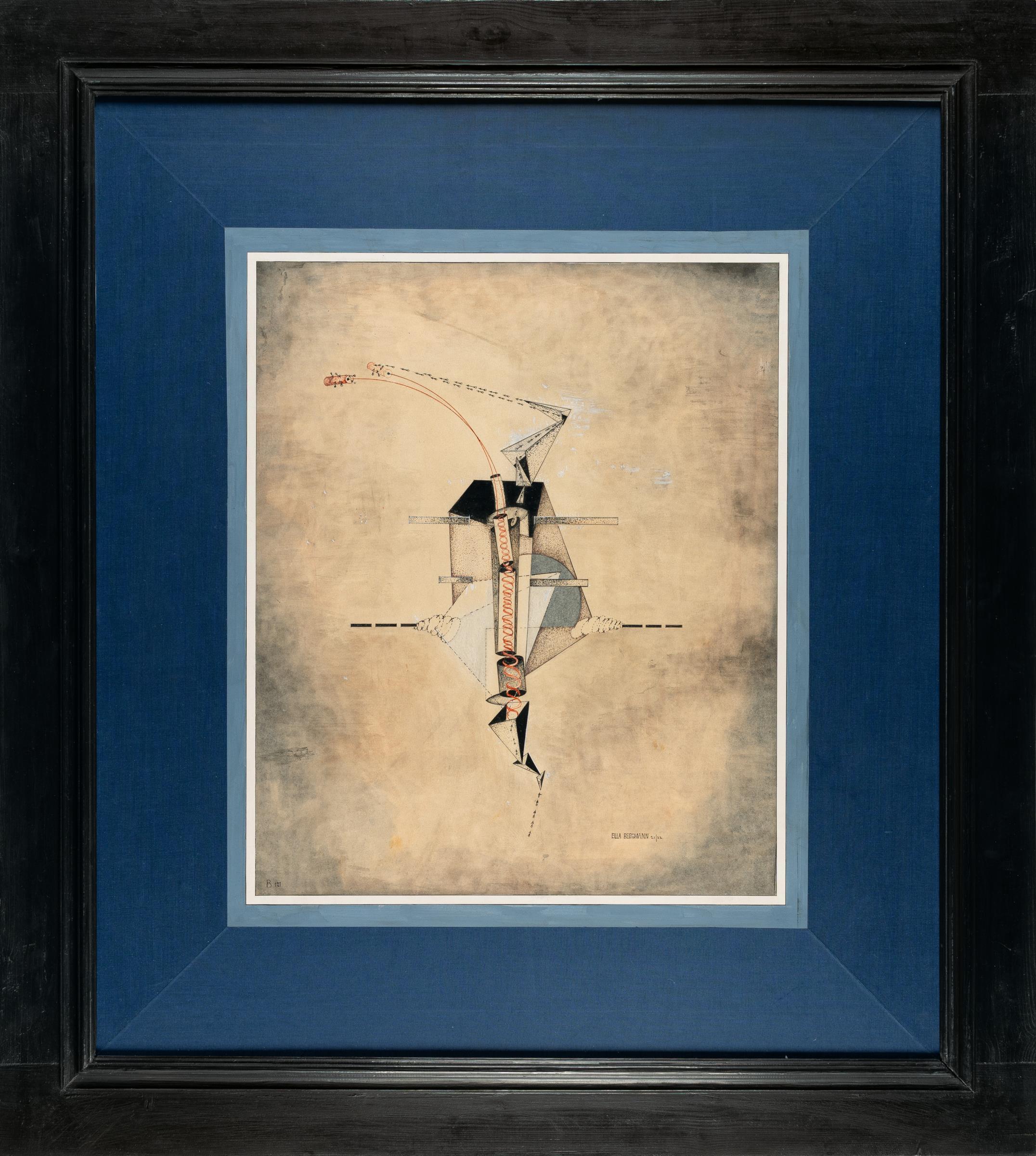 After her time at the academy, during which she created numerous expressionist-influenced woodcuts, Ella Bergmann-Michel produced her first dada-futurist works from 1917/18, material pictures glued together from found objects, so-called assemblages, and paper collages. These works are mostly dominated by circular forms that are clearly reminiscent of wheel mechanics. This certainly makes EBM the pioneer of both the collage technique and the wheel motif (which is still mostly unrecognized today), which can only be found a short time later in the works of her husband Robert Michel and Kurt Schwitters.