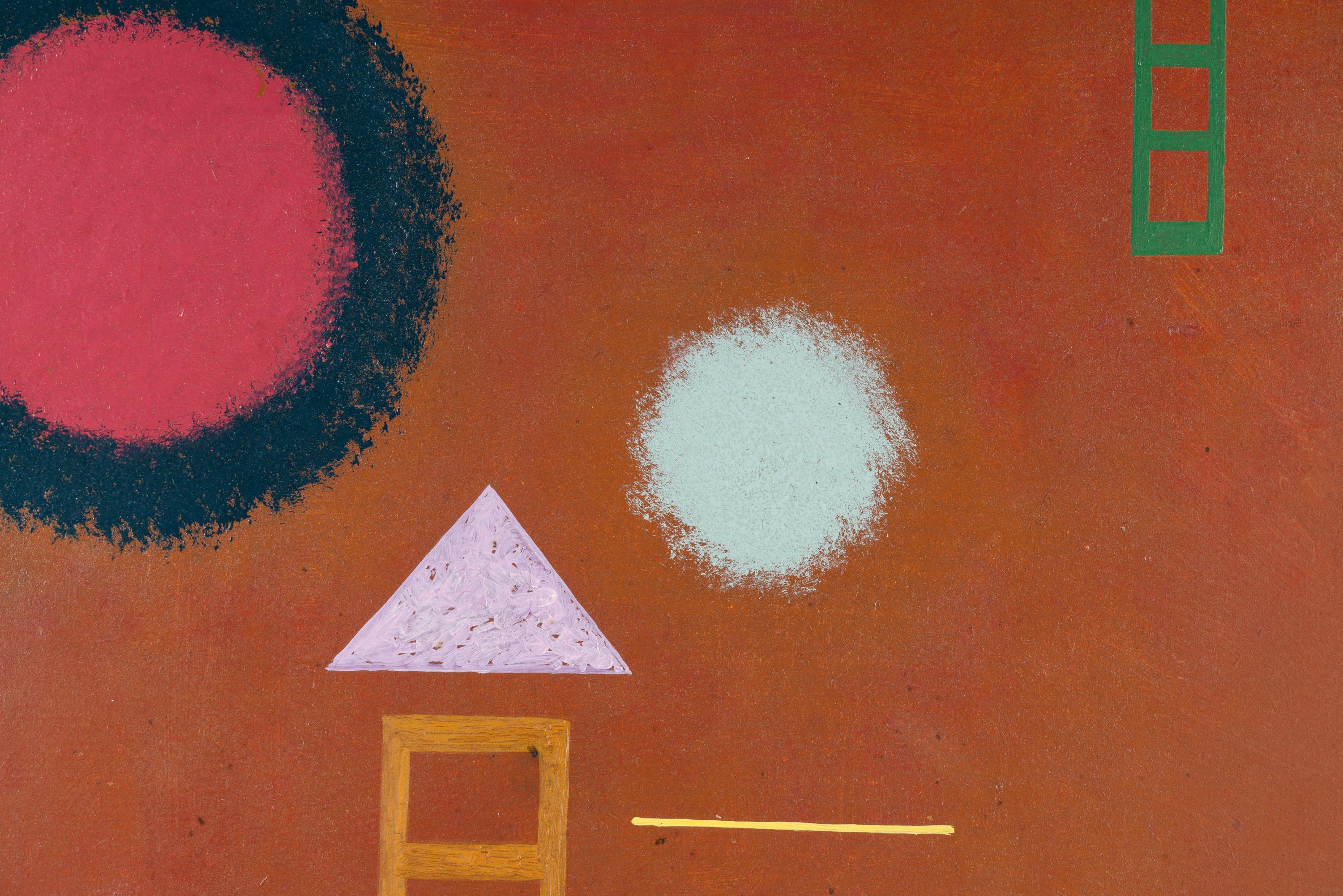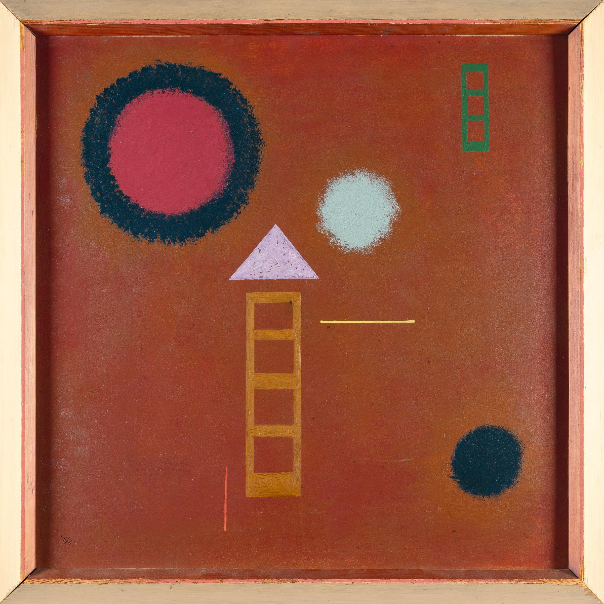 During his professorship at the Bauhaus - from 1922 initially in Weimar, from 1925 in Dessau - Wassily Kandinsky developed a reduced, clear formal language, which he described as the "cool" period. During this phase, the artist developed a pictorial language based on geometric abstraction that combined rationality, spirituality and emotional depth. Instead of the dominant diagonals, he increasingly opted for an orthogonal and planimetric arrangement of the pictorial elements. A fluffy application of paint, the interaction of individual and geometric forms, colored and black grounds, warm tones and a mysterious glow lend his compositions rhythmic lightness and depth.