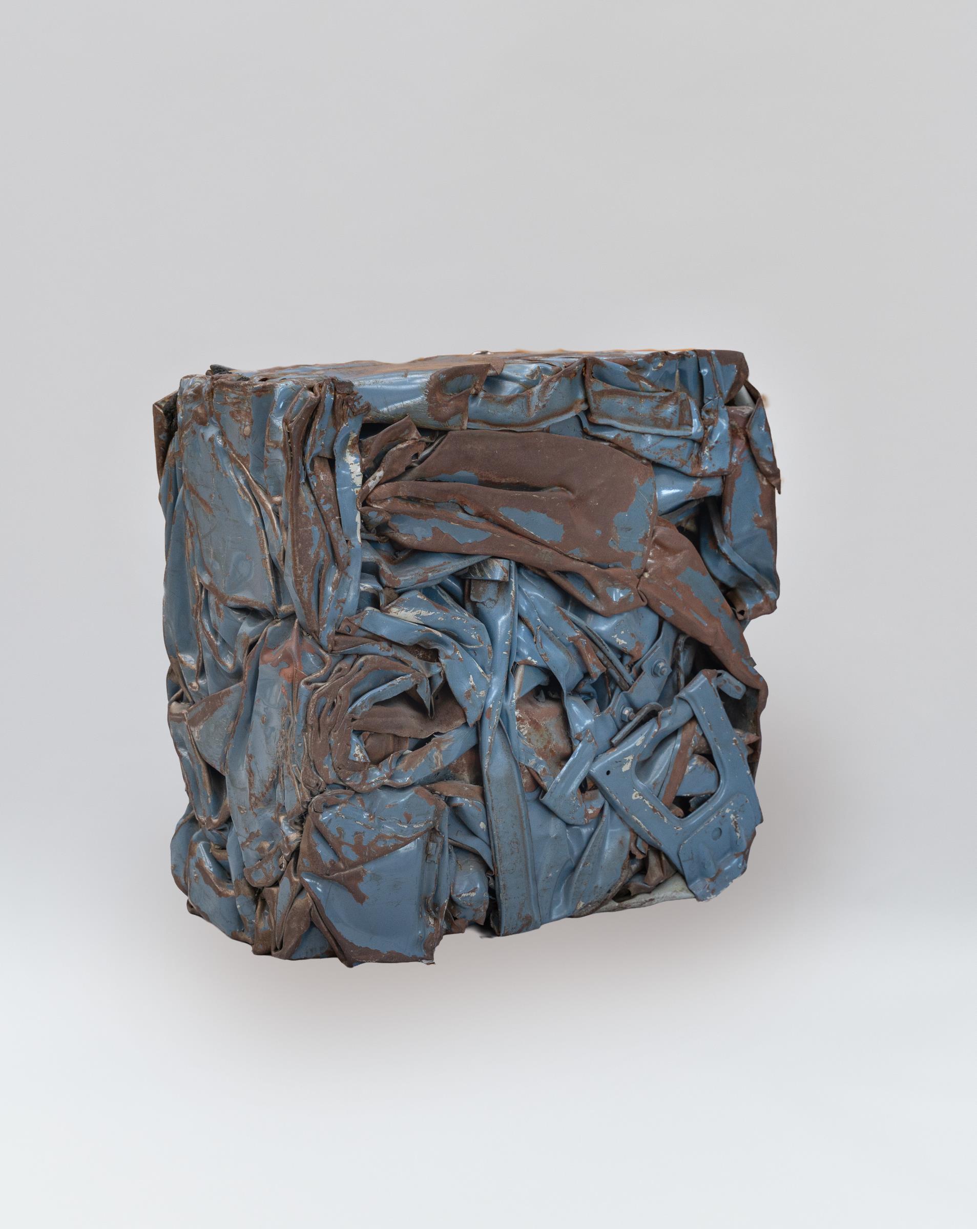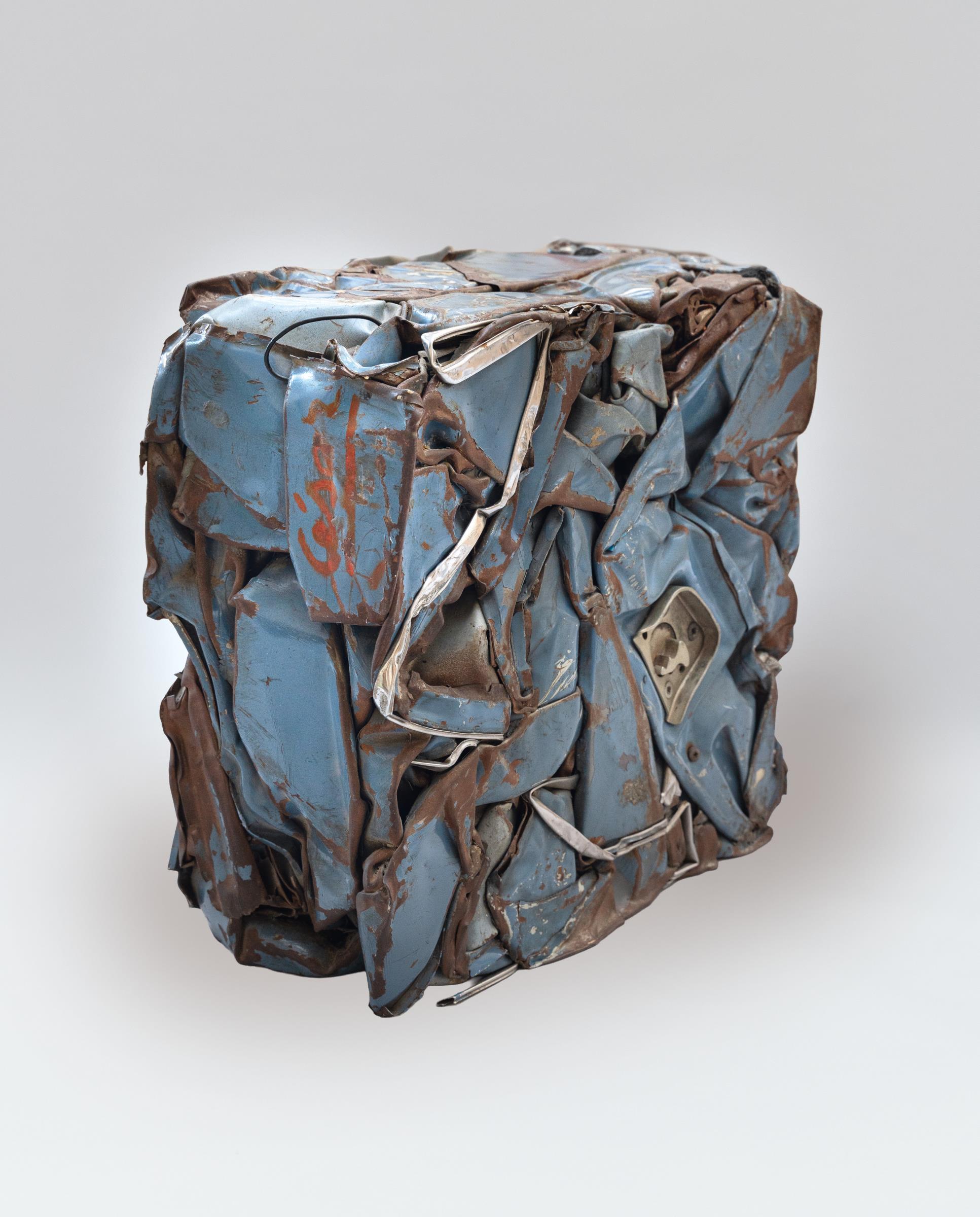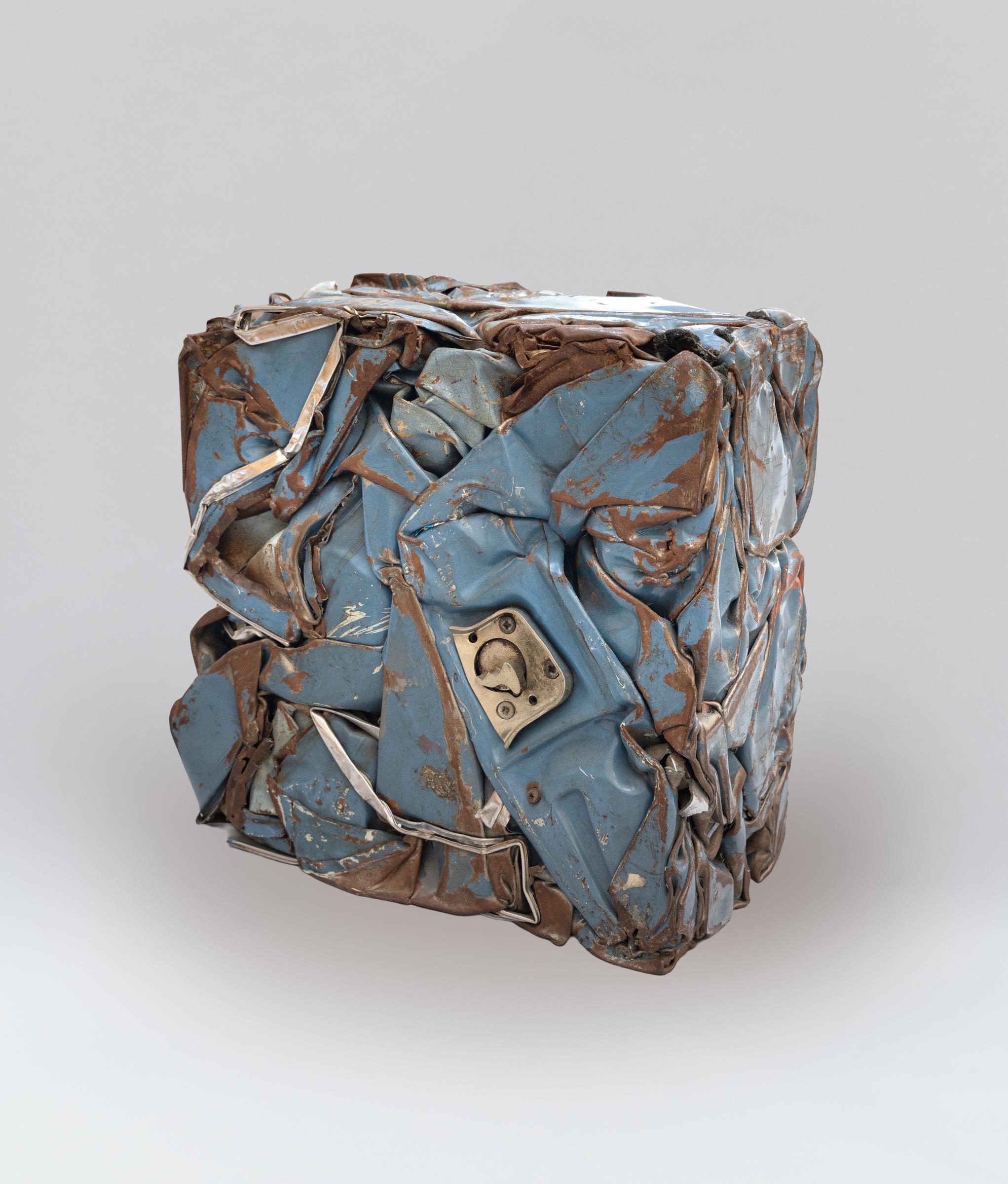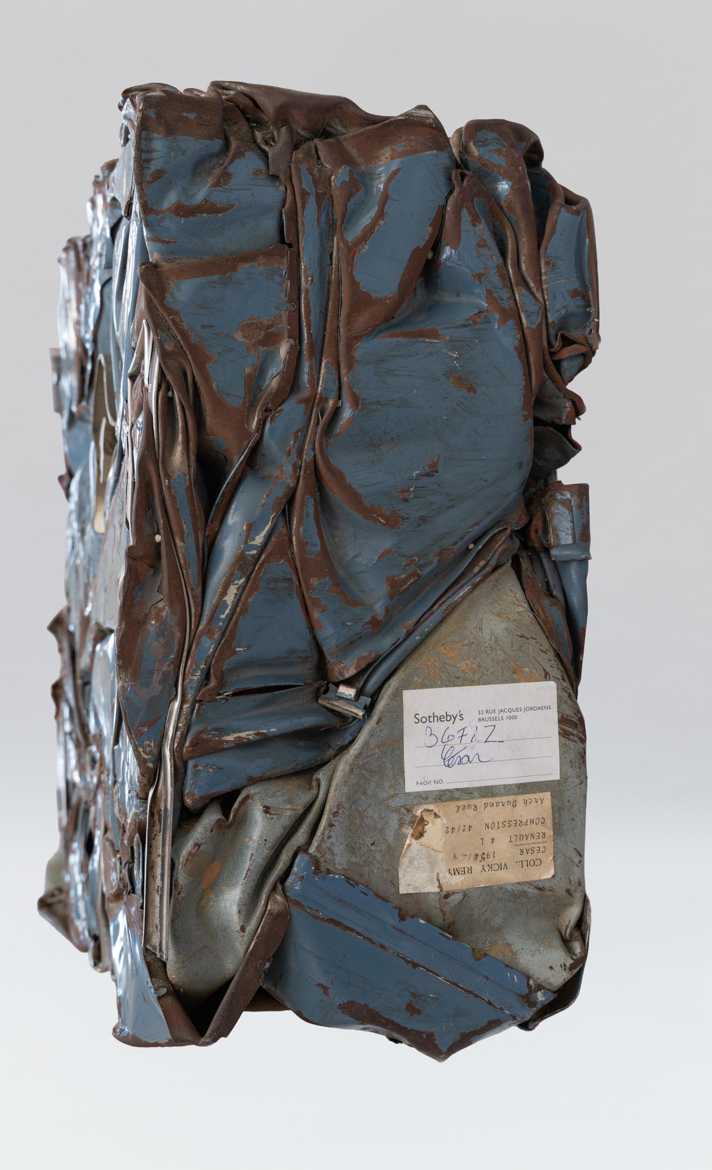 When the sculptor César joined the Nouveaux Réalistes group in Paris in 1961, he had already been an internationally recognized artist since the mid-1950s. The idea of Nouveaux Réalisme, to place everyday objects in a new aesthetic context by integrating them into works of art, had already defined César's work. From the mid-1950s onwards, he welded scrap parts into sculptures; from 1960 onwards, he created his first "Compressions dirigées". Compact sculptures that are formed into cubes by compressing different objects made of the same metallic material - in this case metal parts from a car - in a press. Even if the result of the compression is subject to chance, in this work César succeeds in transforming the heaviness of the material into an almost poetic lightness. Always guided by the logic of the material, César sees the compressions less as an intellectual and more as a manual creative process