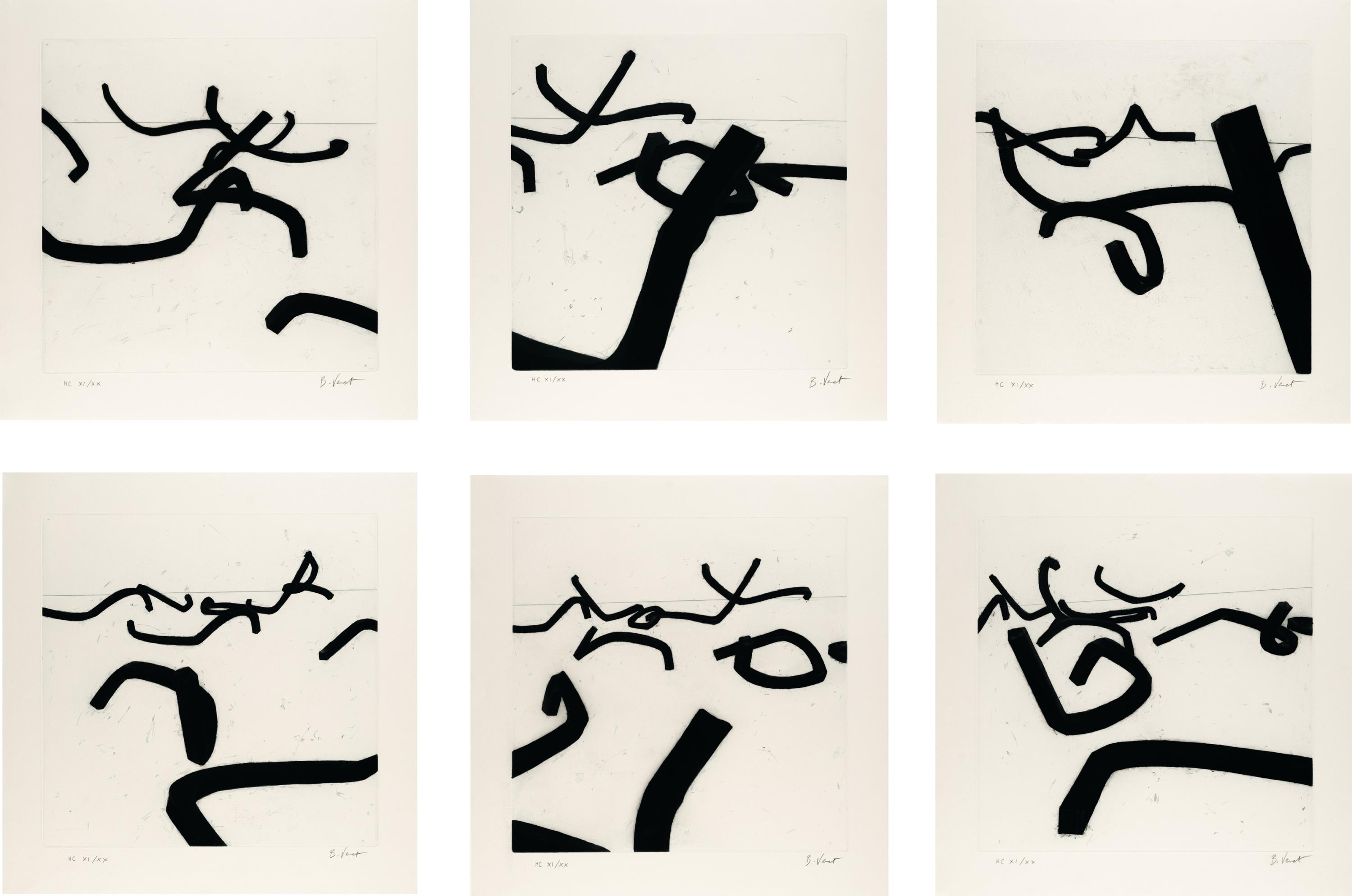 Folge von 6 Radierungen mit Aquatinta auf Velin von BFK Rives. (1996). Ca. 39,5 x 39,5 cm (Blattgröße ca. 51 x 50 cm). Ein „HC“-Exemplar aus einer römisch nummerierten Auflage von 20. Signiert unten rechts.