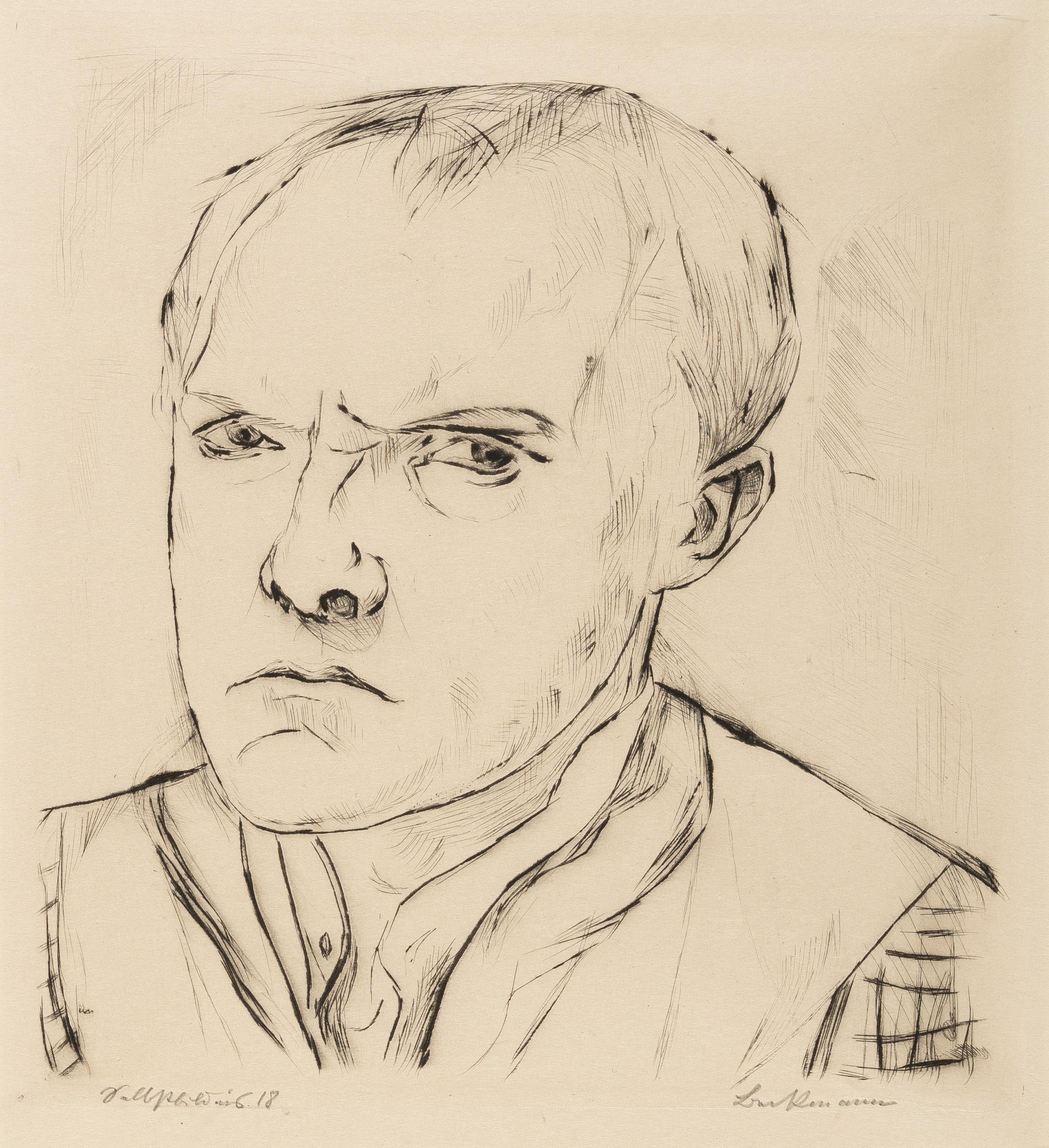 Blatt 1 der 19-teiligen Mappe „Gesichter“, 1919 herausgegeben vom Verlag der Marées Gesellschaft, R. Piper, München, mit dem Trockenstempel.