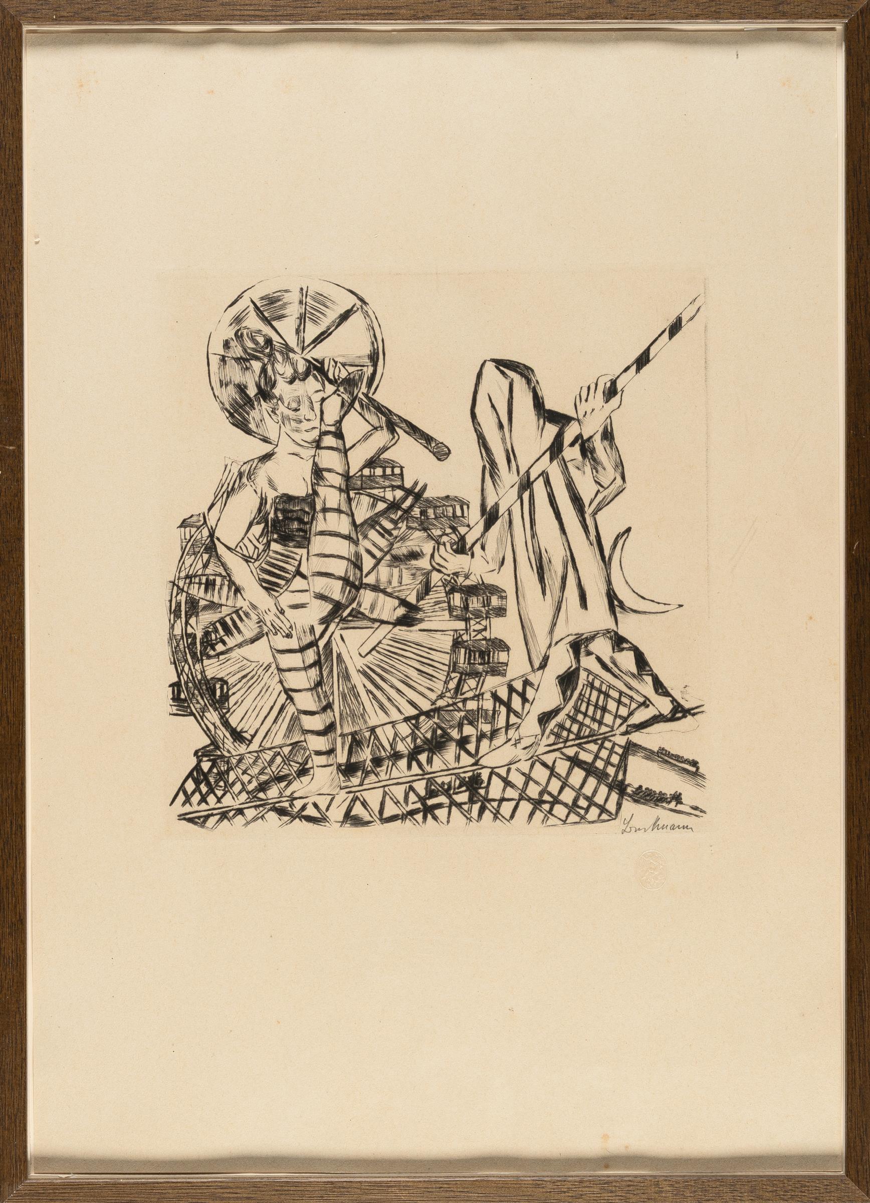 Blatt 8 der 10-teiligen Folge „Der Jahrmarkt“. Herausgegeben 1922 von Reinhard Piper & Co. im Verlag der Marées Gesellschaft, München, mit dem Trockenstempel.