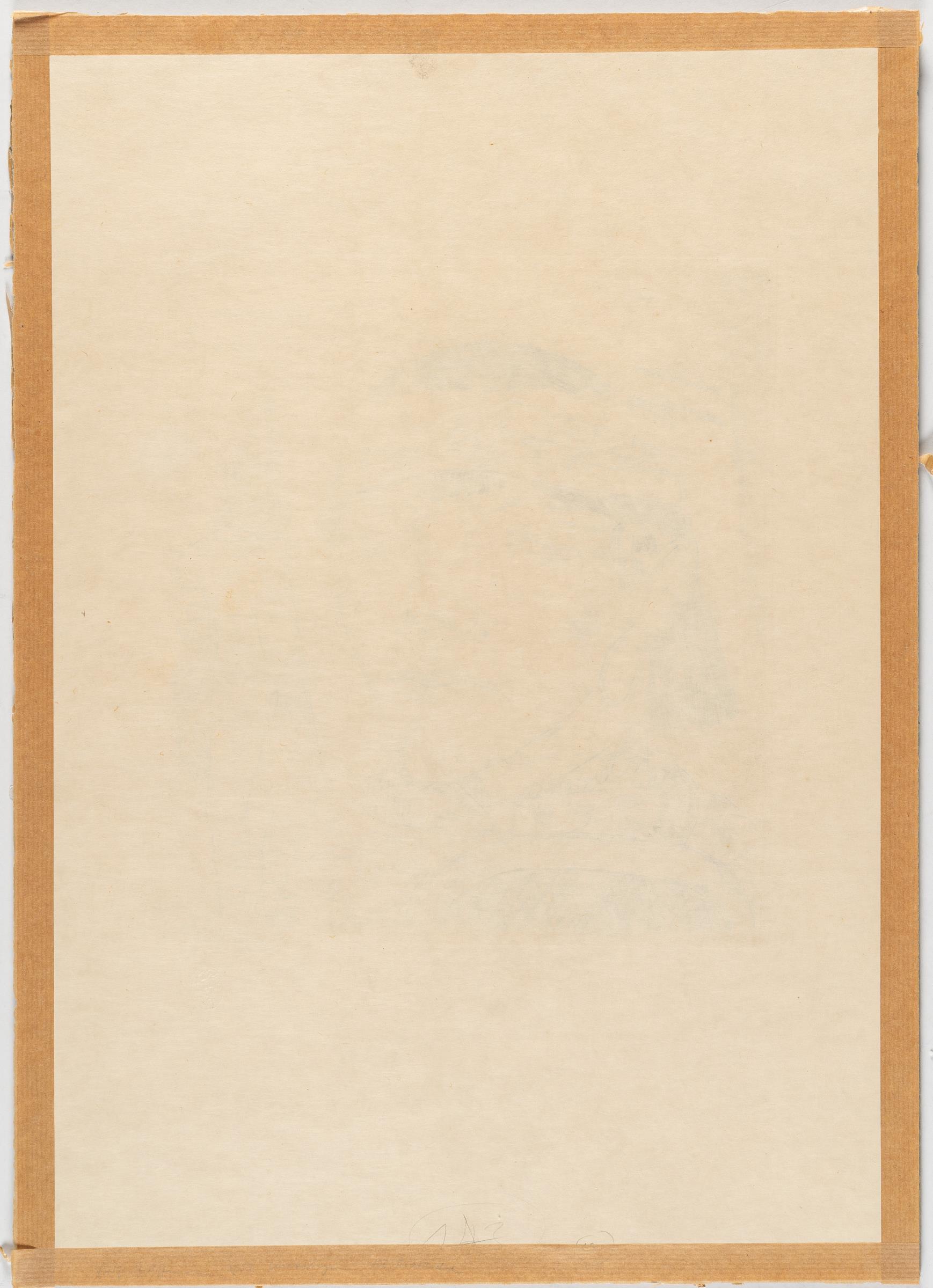 Im Plattenrand schwach gebräunt, vereinzelte winzige Fleckchen und leichte Griffknicke. Blattränder schwach bestoßen und teils mit kleinen Quetschfalten durch verso umlaufendes Montierungsband, dies leicht nach recto durchdrückend.