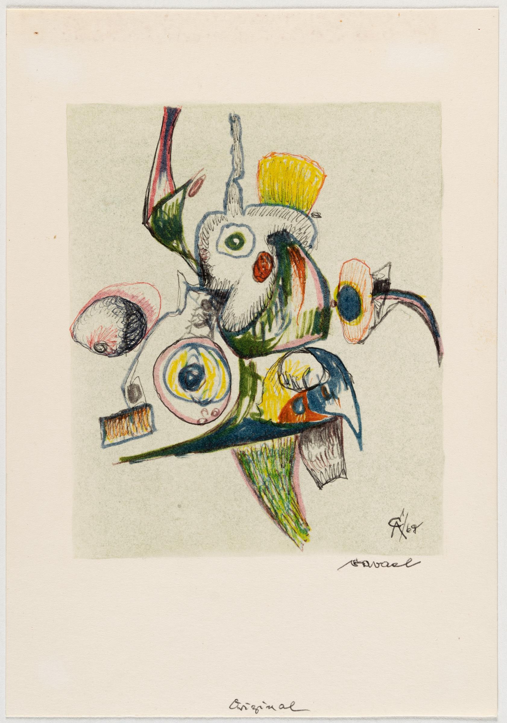 Blatt 2: Filzstift, farbiger Kugelschreiber, Bleistift und Aquarell auf leichtem Karton. (19)69. Ca. 22,5 x 15,5 cm. Signiert, monogrammiert und datiert unten rechts. Bezeichnet „Original“ unten mittig.