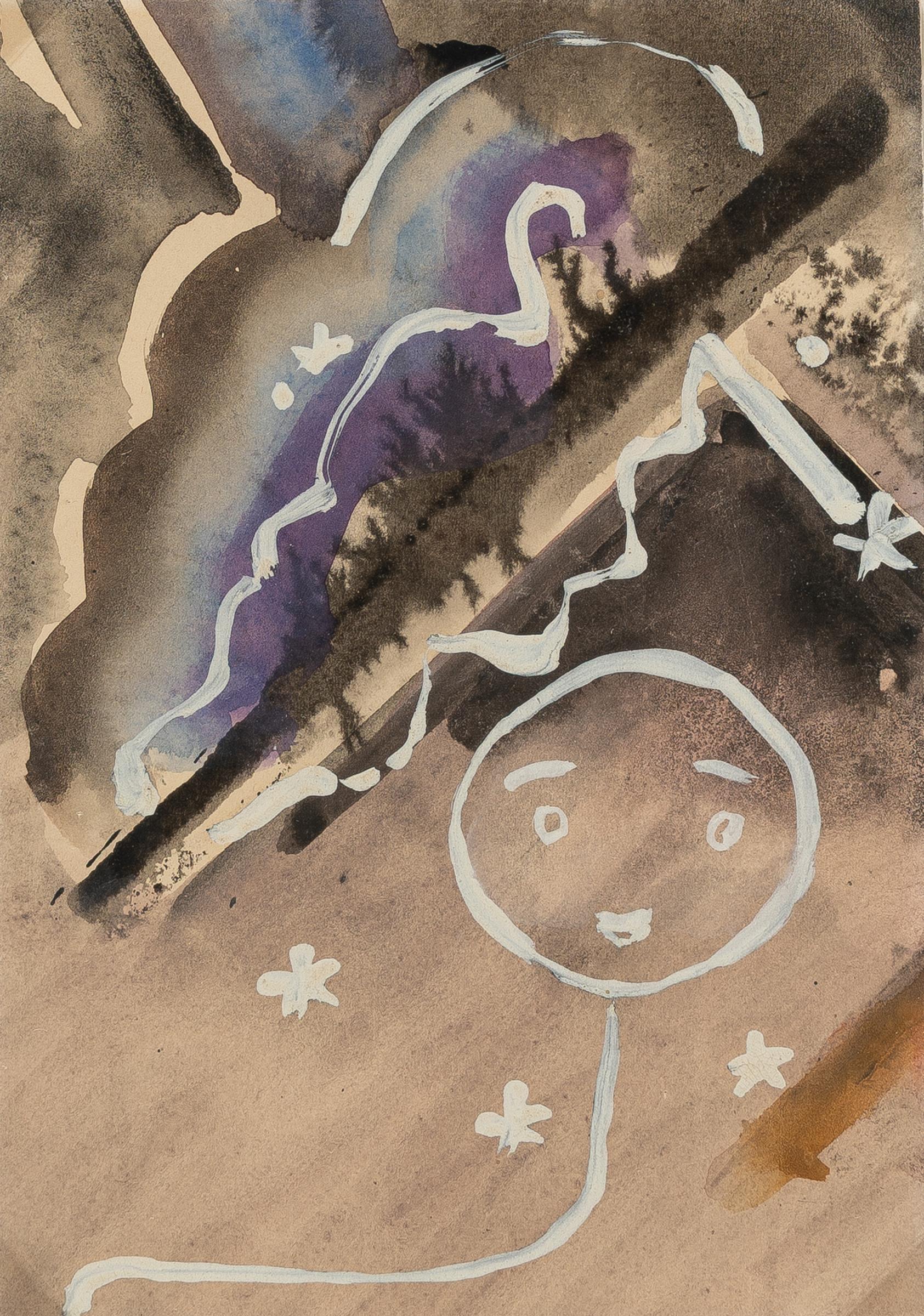 Aquarell und Deckweiß auf Velin. (Um 1960/61). Ca. 10,5 x 14,5 cm. Verso signiert, datiert und mit einer Widmung „Alles Gute für 1961" versehen.