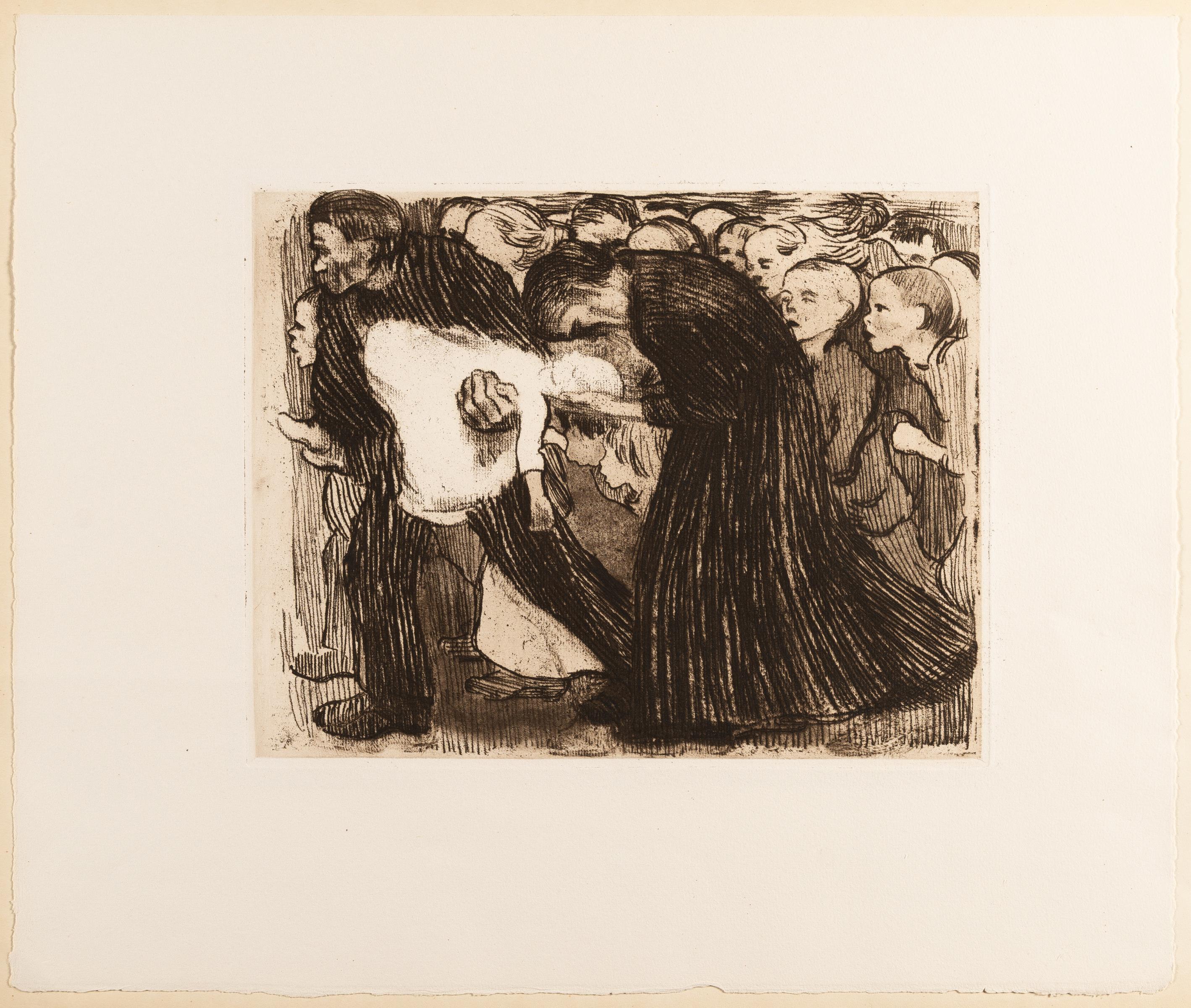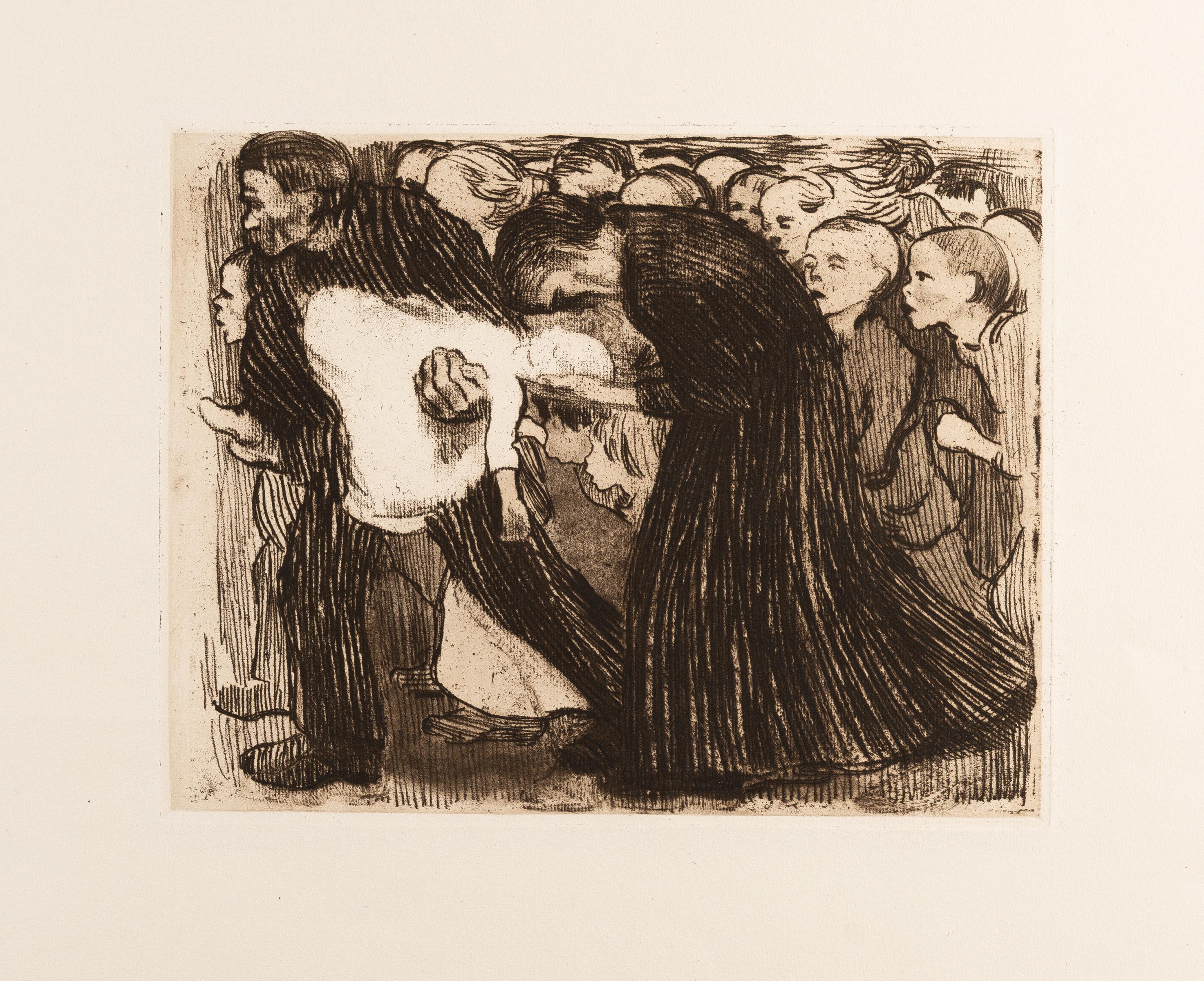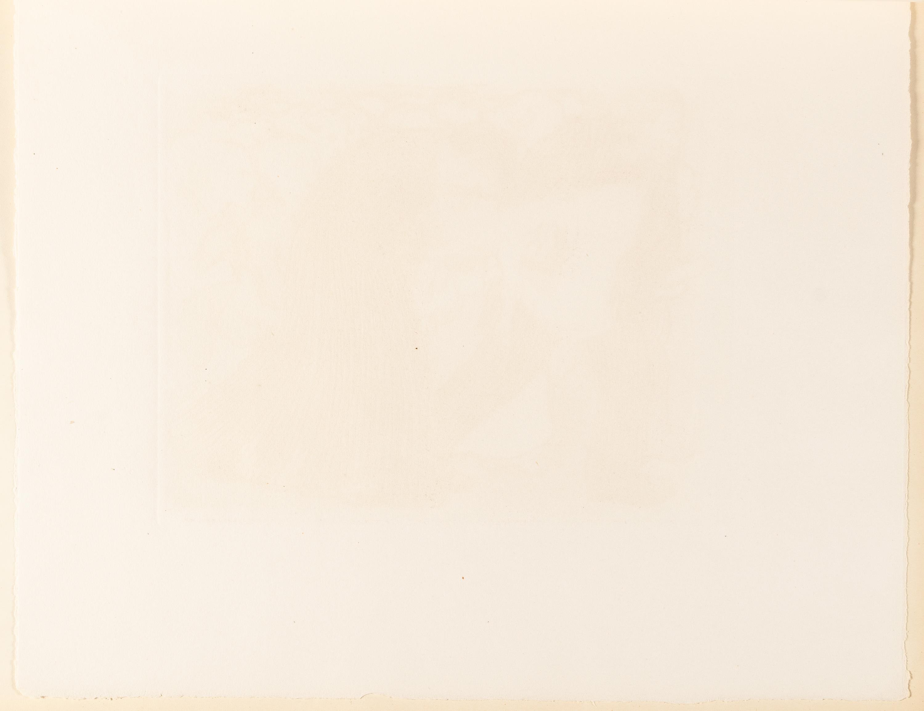 Radierung mit Strichätzung, Vernis mou mit Durchdruck auf festem, chamoisfarbenem Kupferdruckpapier. (1910). Ca. 25 x 32 cm (Blattgröße ca. 42 x 50 cm). Auflagenhöhe unbekannt.