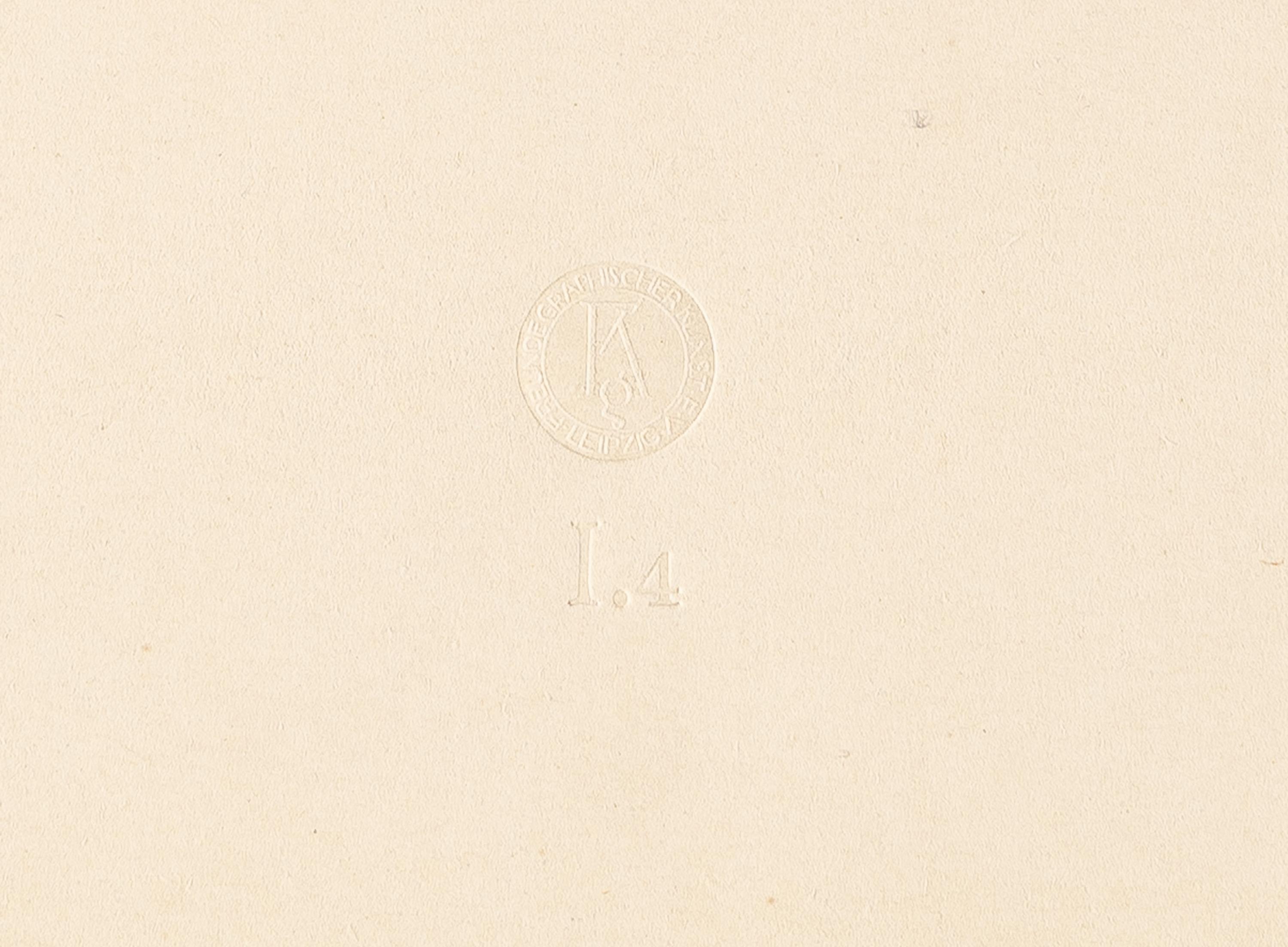 Diese Auflage erscheint 1913 als I. Jahresgabe der „Freunde graphischer Kunst e.V.“, Leipzig, mit dem Trockenstempel auf dem O.-Passepartout.