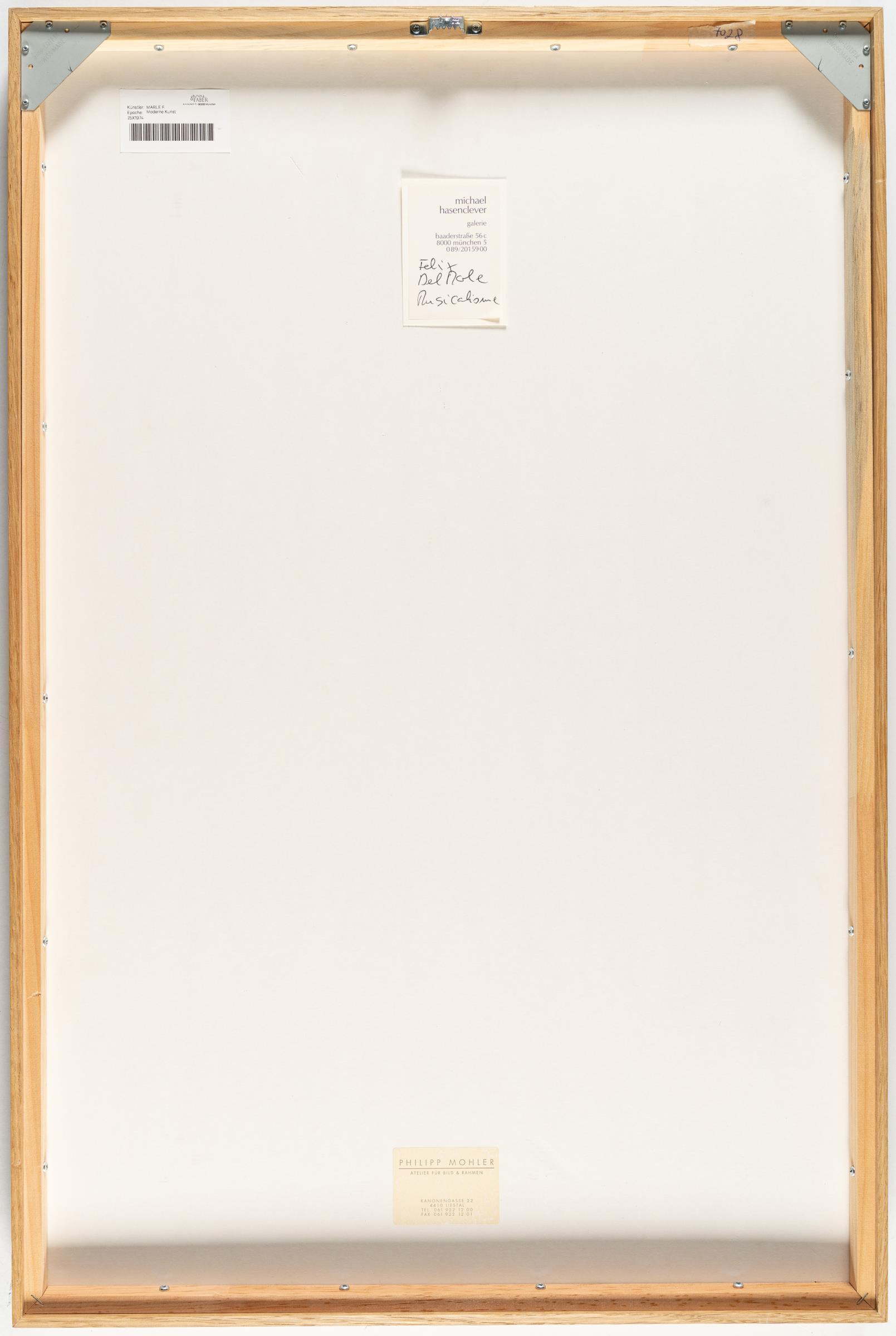 Papier auf der linken Seite, außerhalb der Darstellung, angestückt (wohl vom Künstler). Verso mit Resten alter Montierung. Deckweiß technikbeding teilweise mit leichten Schwundrissen. Kaum merkliche Knickspuren im Randbereich. Insgesamt in guter Erhaltung.