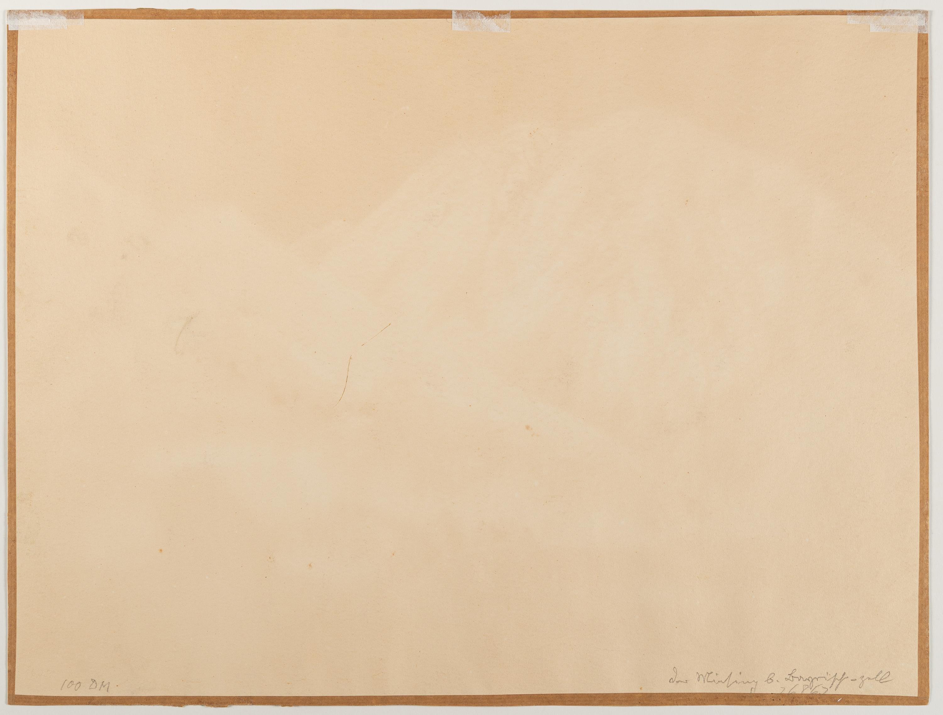 Innerhalb des alten Passepartout-Ausschnitts leicht gebräunt. Verso Reste alter Montierung. Sonst von guter Erhaltung.