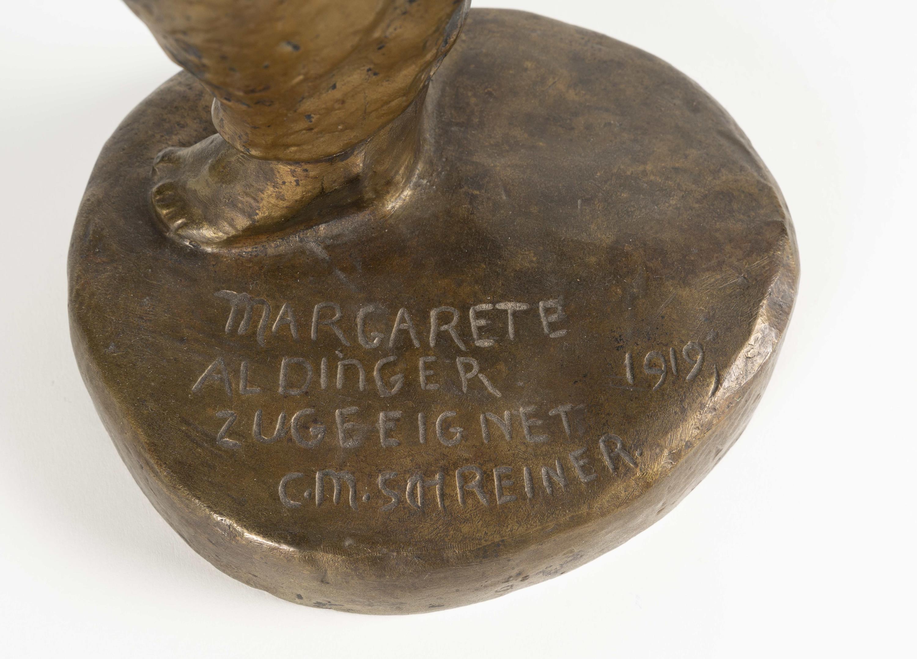 Bronze mit goldbrauner Patina. 1919. Höhe ca. 58,5 cm. Auf der Plinthe mit dem eingeritzten Namenszug des Künstlers sowie datiert und bezeichnet „Margarete Aldinger zugeeignet“.