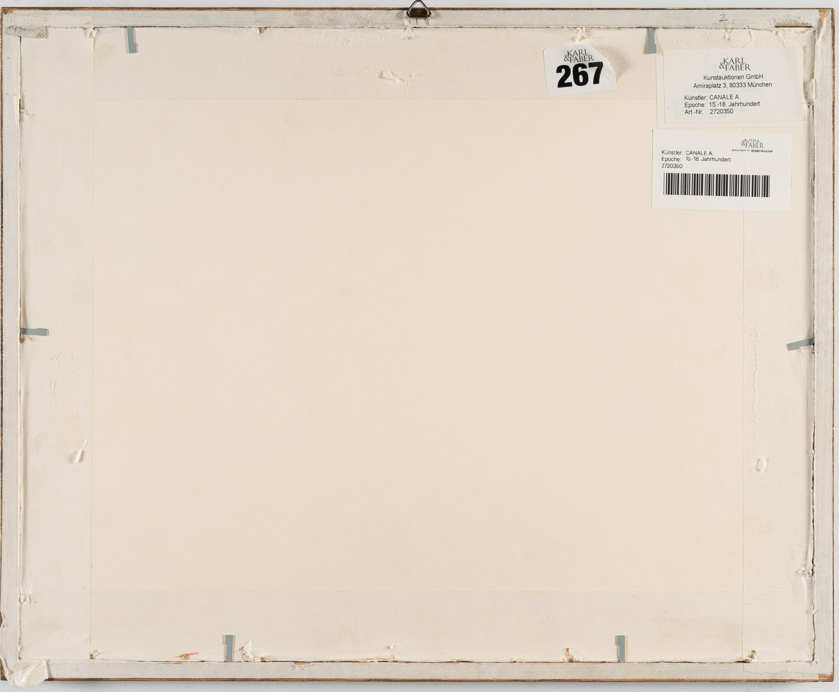 Giovanni Antonio Canal (gen. Canaletto) Paesaggio con torre e pilastri in rovina Previous Lot overview Next Lot ID Lot 260 Artist Giovanni Antonio Canal (gen. Canaletto) Etching on laid paper, watermark “Tre lune“. 14.4 x 21 cm (plate); 23.6 x 26.6 cm (sheet). Further information Bromberg 28 II; De Vesme 25. Provenance Art Gallery Helmut H. Rumbler, Frankfurt am Main; Private collection, United Kingdom. Etching on laid paper, watermark “Tre lune“. 14.4 x 21 cm (plate); 23.6 x 26.6 cm (sheet). Description Superb impression, finely detailed in all tonal nuances. With wide margins. – In very good condition. Add to favourites Download PDF Share Etching on laid paper, watermark “Tre lune“. 14.4 x 21 cm (plate); 23.6 x 26.6 cm (sheet). Description Superb impression, finely detailed in all tonal nuances. With wide margins. – In very good condition.