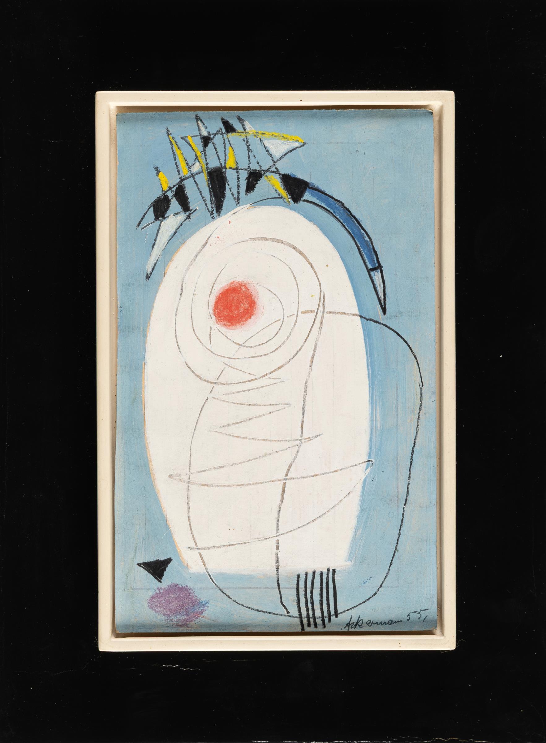 Gouache, farbige Ölkreide und Bleistift auf feinem Karton. 1955. Ca. 21 x 13 cm. Signiert und datiert unten rechts. Verso nochmals signiert und datiert.