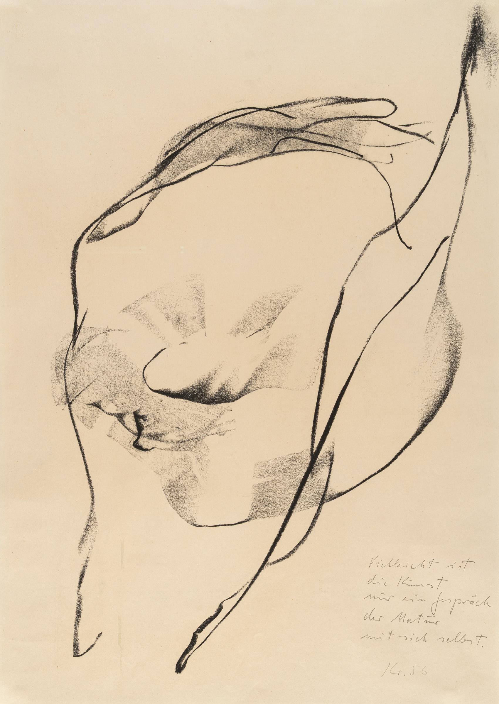 Schwarze Kreide auf chamoisfarbenem Velin. (19)56. Ca. 60,5 x 43 cm. Monogrammiert, datiert und betitelt unten rechts.