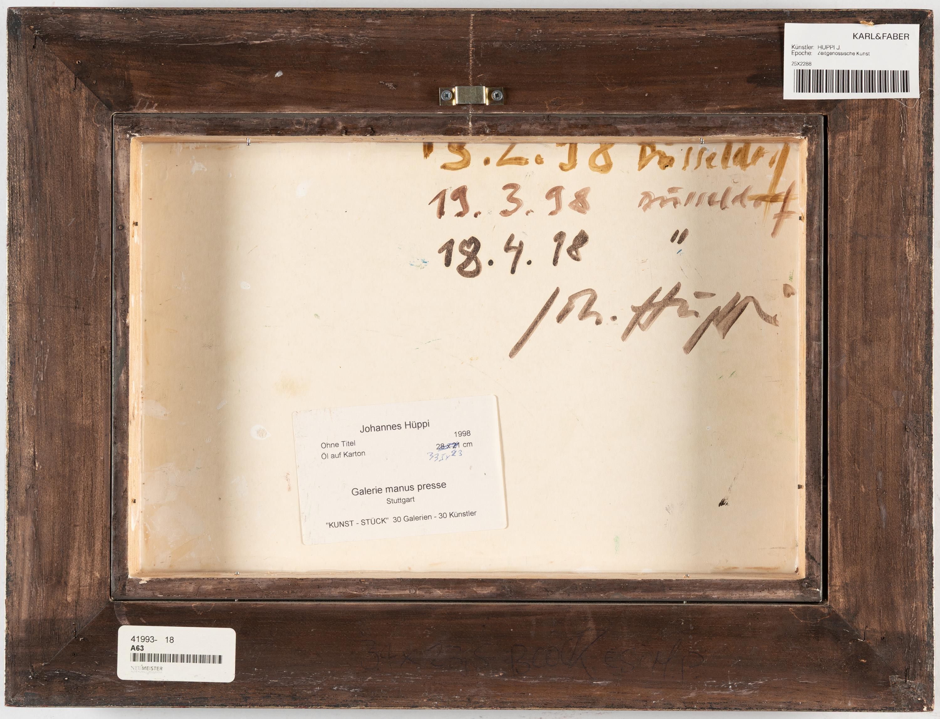 "Kunst-Stück" 30 Galerien - 30 Künstler, Galerie manus presse, Stuttgart, verso auf der Platte mit dem Etikett.