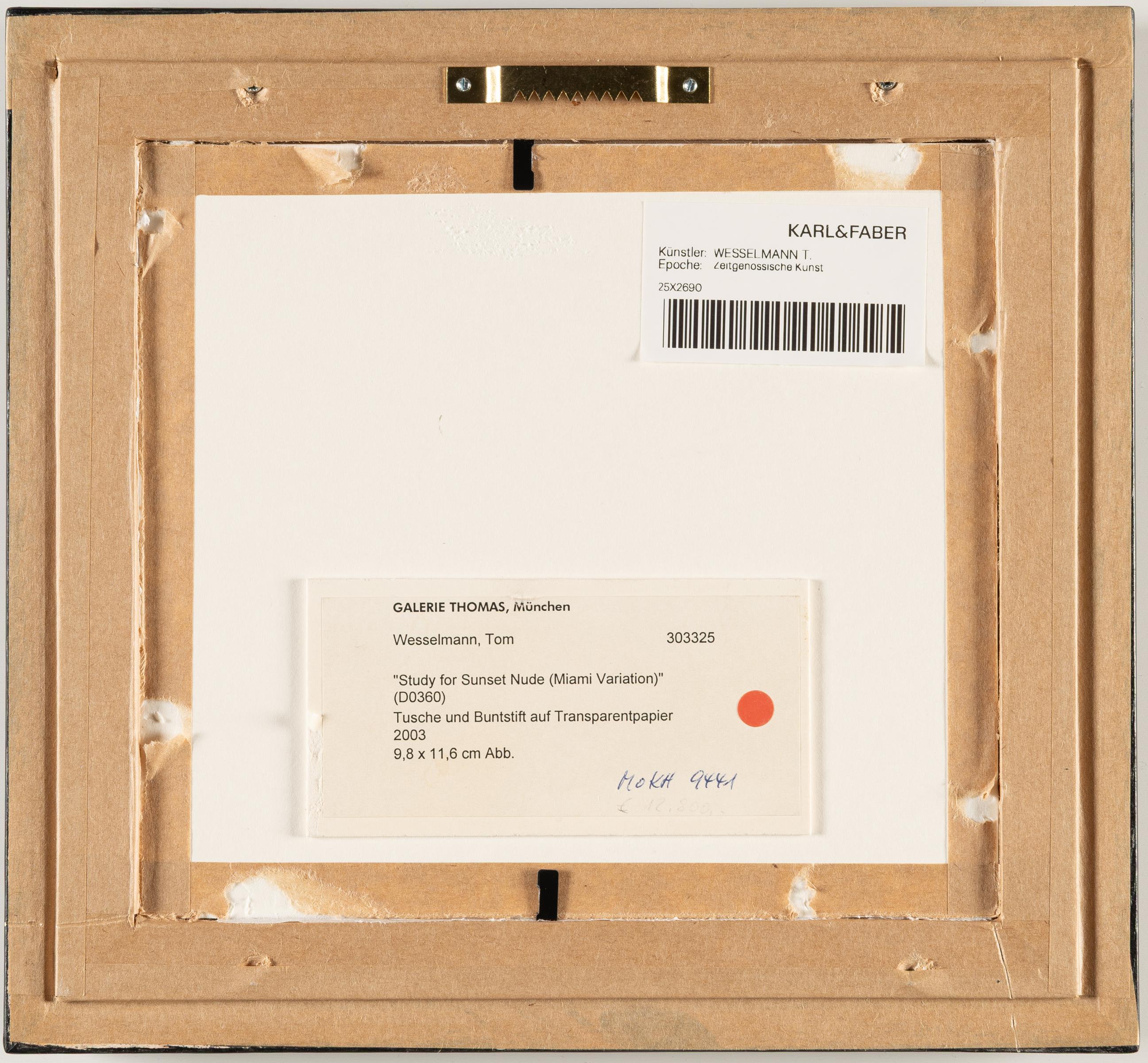 Wir danken dem Tom Wesselmann Estate für die freundlichen Hinweise bei der Katalogisierung dieses Werkes. Die Arbeit ist im Archiv des Tom Wesselmann Estate registriert.
