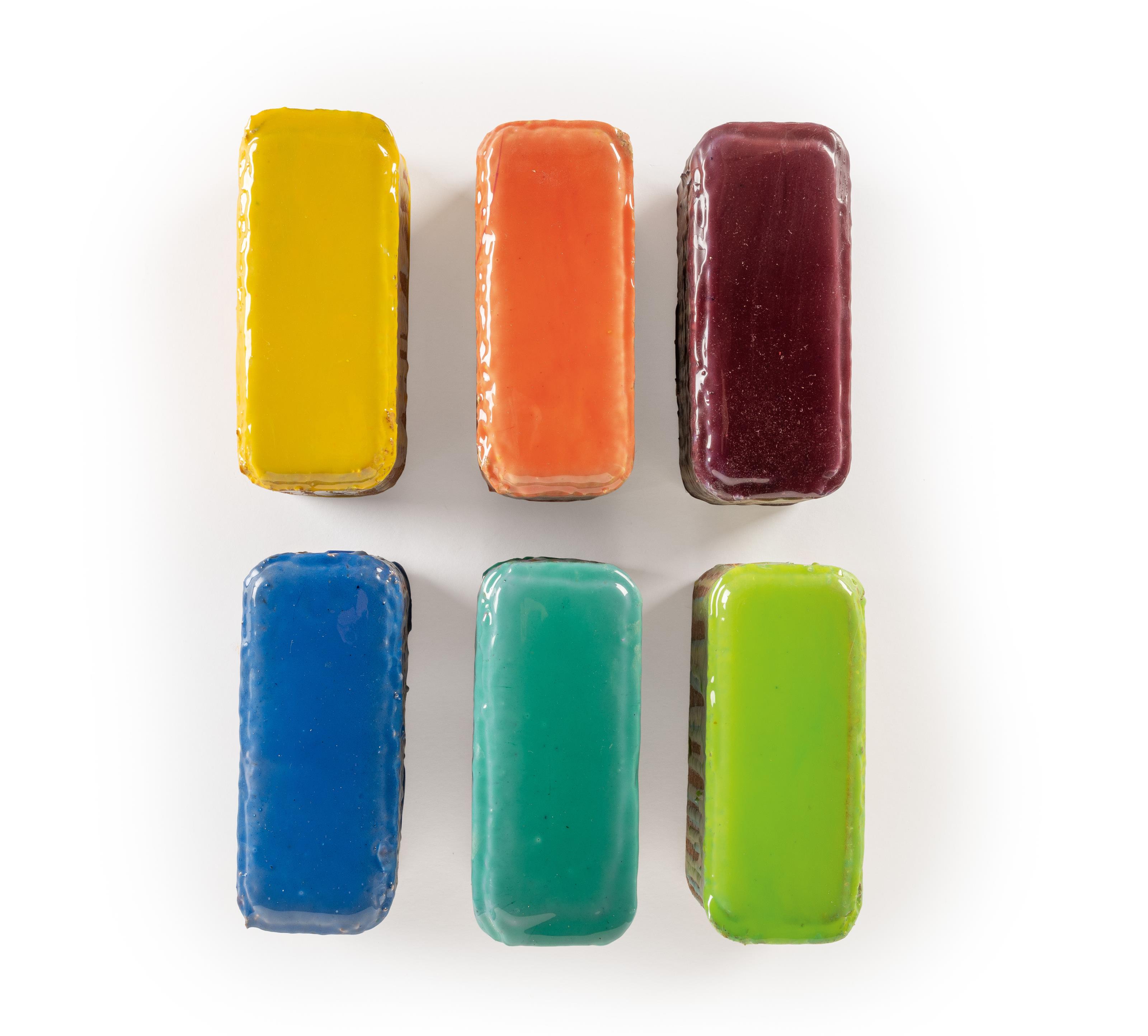 Holz, Epoxidharz und Farbpigment. 2015/16. Je ca. 15,5 x 7 x 9,5 cm. Jeweils auf der Unterseite signiert und datiert.
