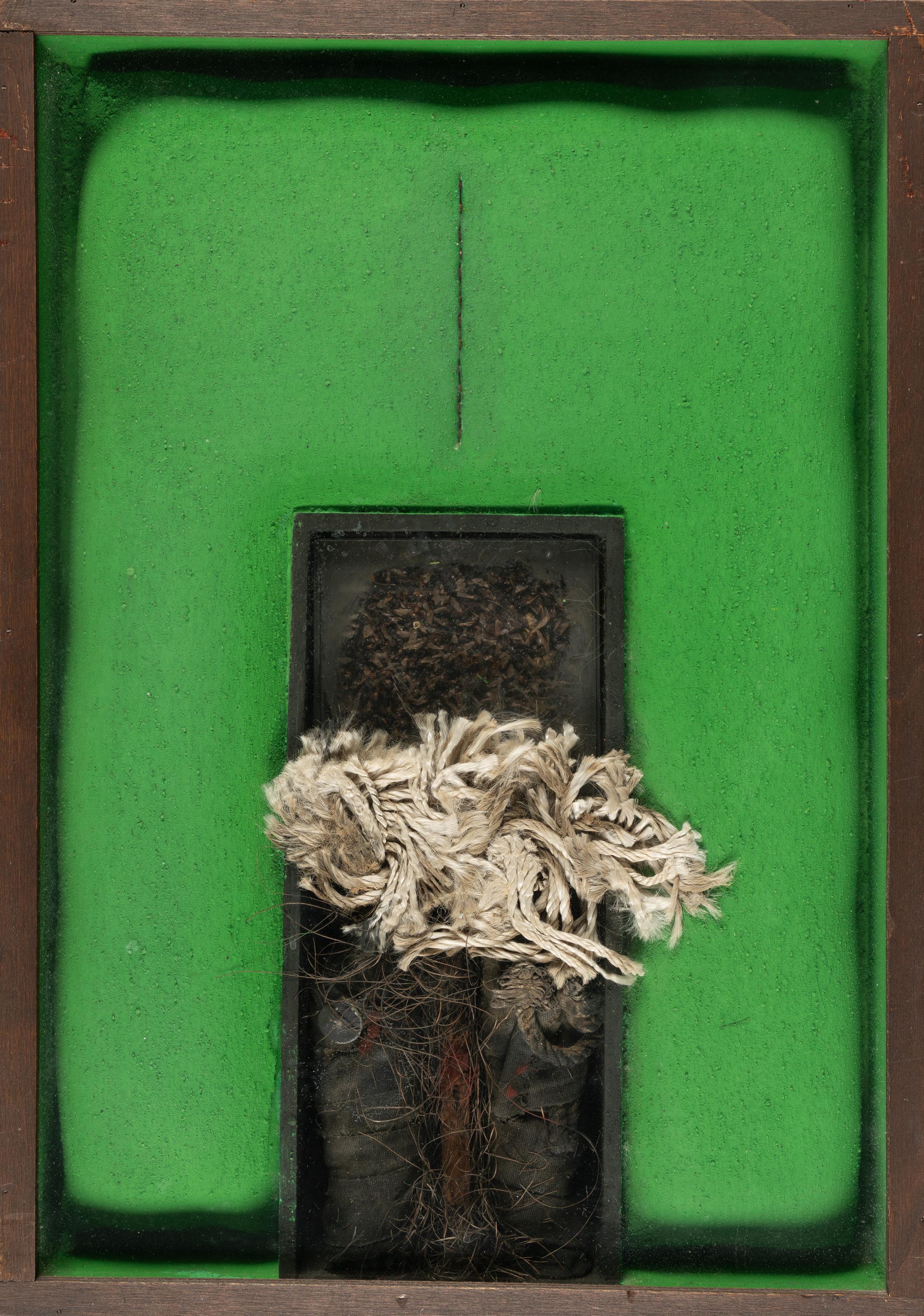 Objektkasten mit Polstermontage. 1972. Ca. 49 x 34,5 x 6,5 cm. Verso signiert, datiert, betitelt, mit Richtungspfeil und der handschriftlichen Werknummer "K 445".