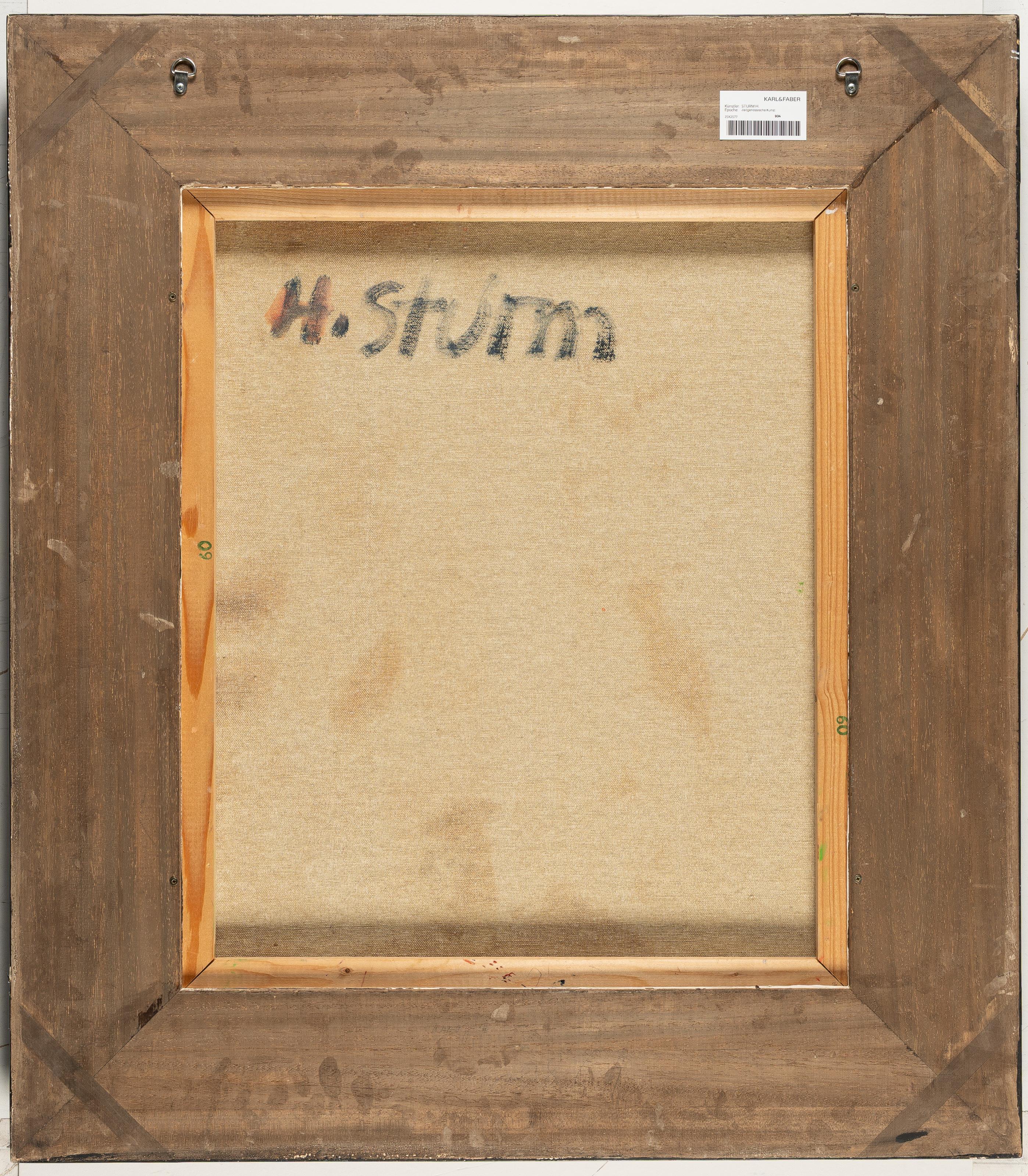 Fest in Atelierleisten und Schattenfugenrahmen montiert. Zur Katalogisierung nicht ausgerahmt. Teils feines Craquelé, pastose Farbpartien teils schwach bestoßen, Bildkanten partiell minimal berieben. Insgesamt in guter Erhaltung.