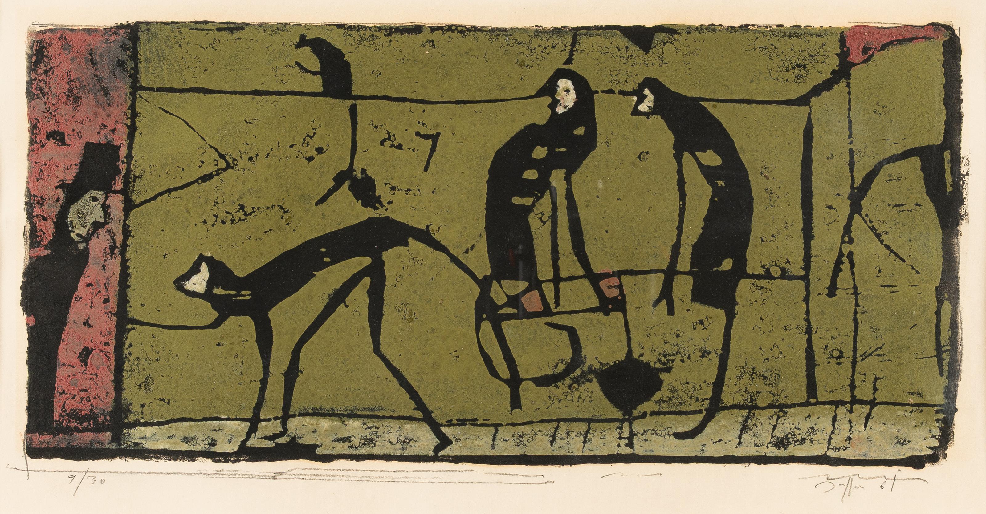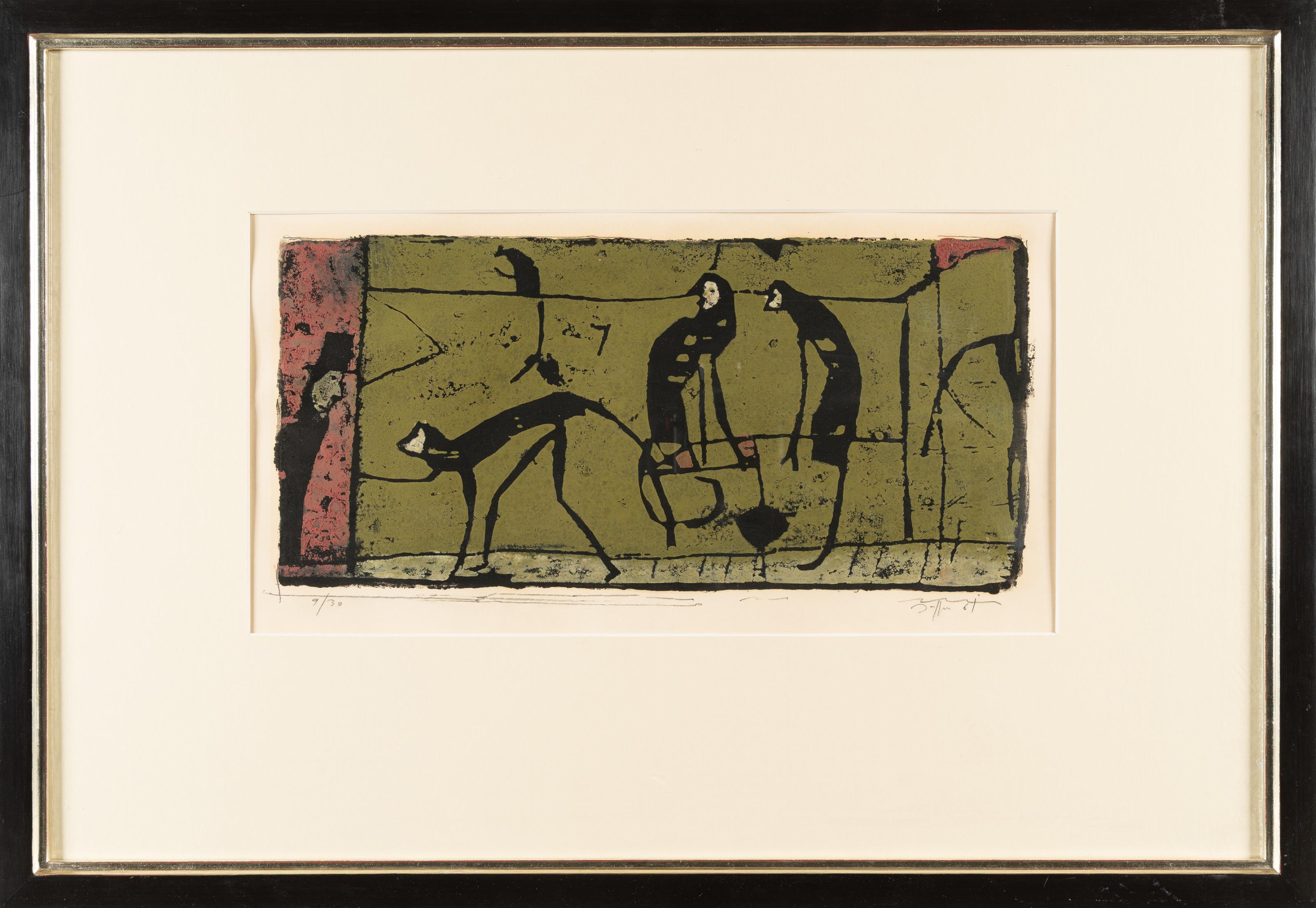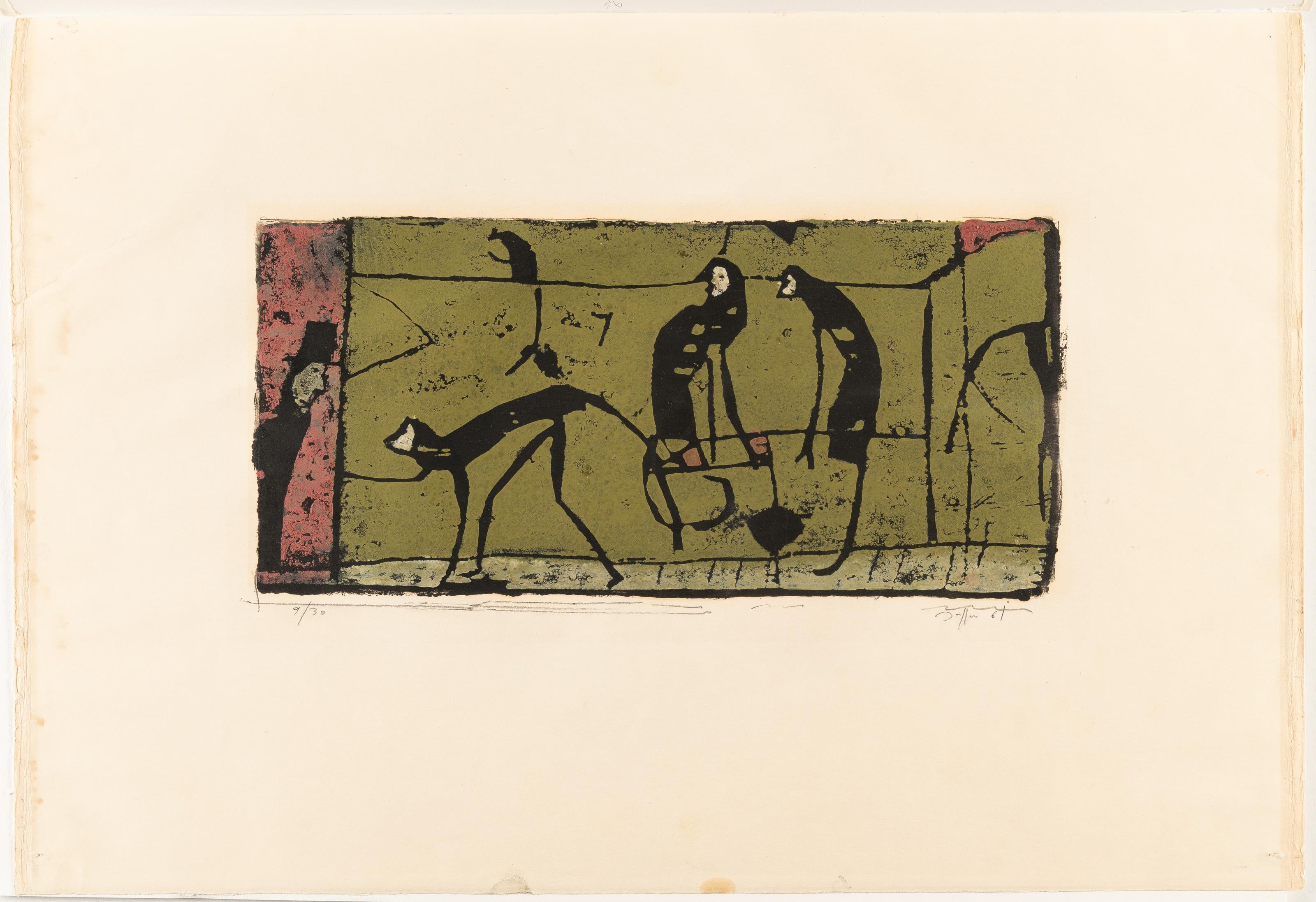Farbiger Holzschnitt auf cremefarbenem Velin. (19)61. Ca. 19,5 x 41 cm (Blattgröße ca. 45 x 66 cm). Eines von 30 nummerierten Exemplaren. Signiert und datiert unten rechts.