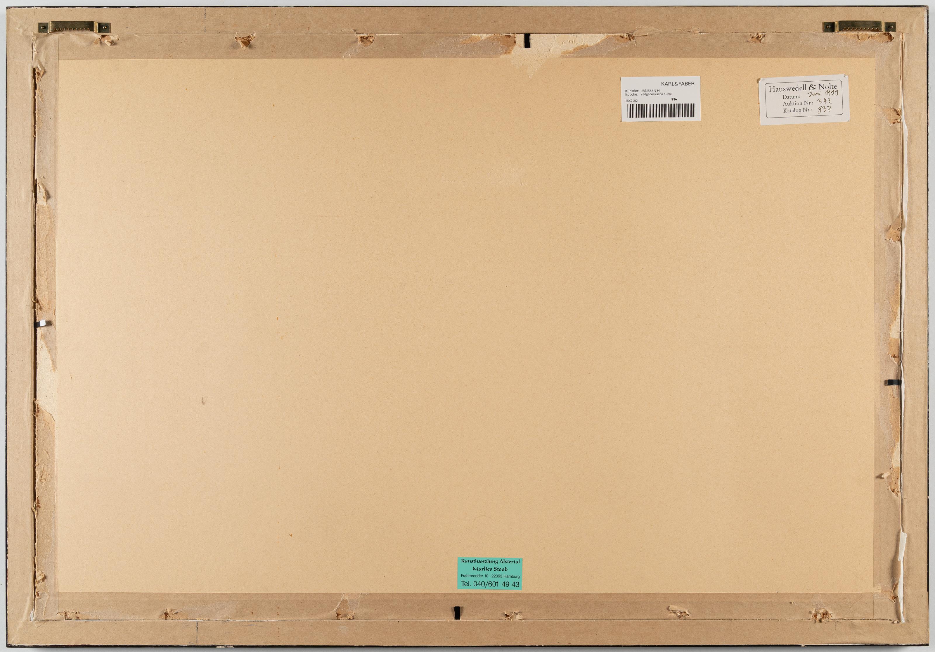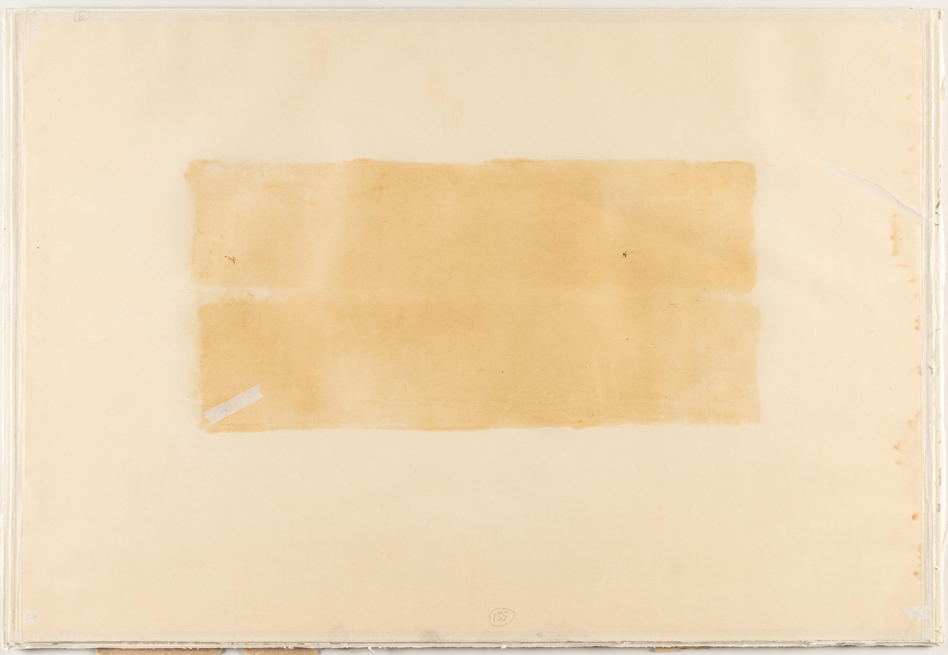 Leicht unregelmäßig nachgedunkelt, mit minimaler Ausfettung. Vereinzelte Fleckchen, an den Rändern etwas deutlicher. Papier etwas knittrig, mit Falten und zwei hinterlegten Risschen sowie hinterlegte Nadellöchlein an den Ecken. Verso umlaufend mit Klebeband an den Rändern versehen, dort recto leicht bestoßen. Insgesamt in altersgemäßem Zustand.