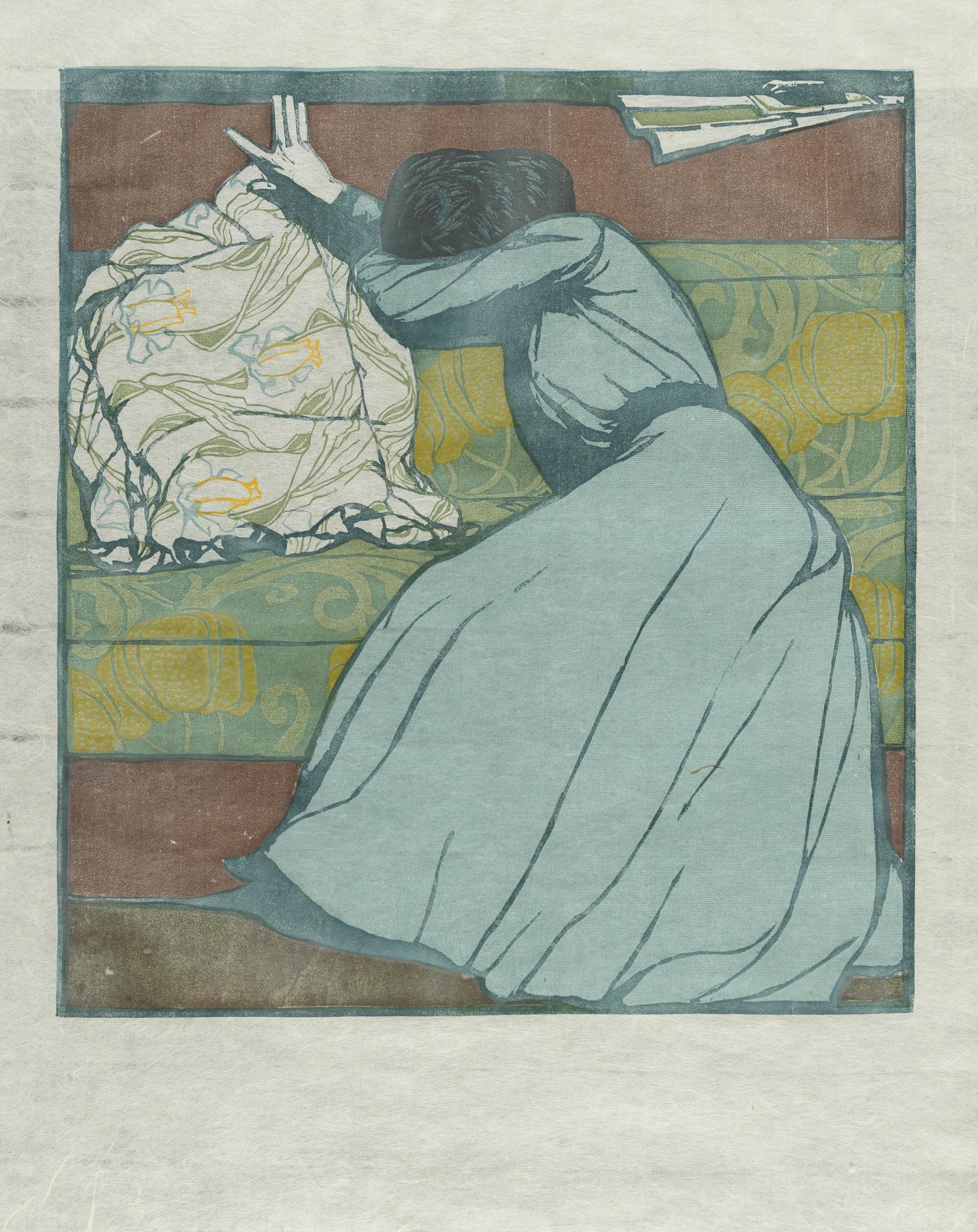 Der Polster. (Martha Kurzweil auf dem Divan sitzend).