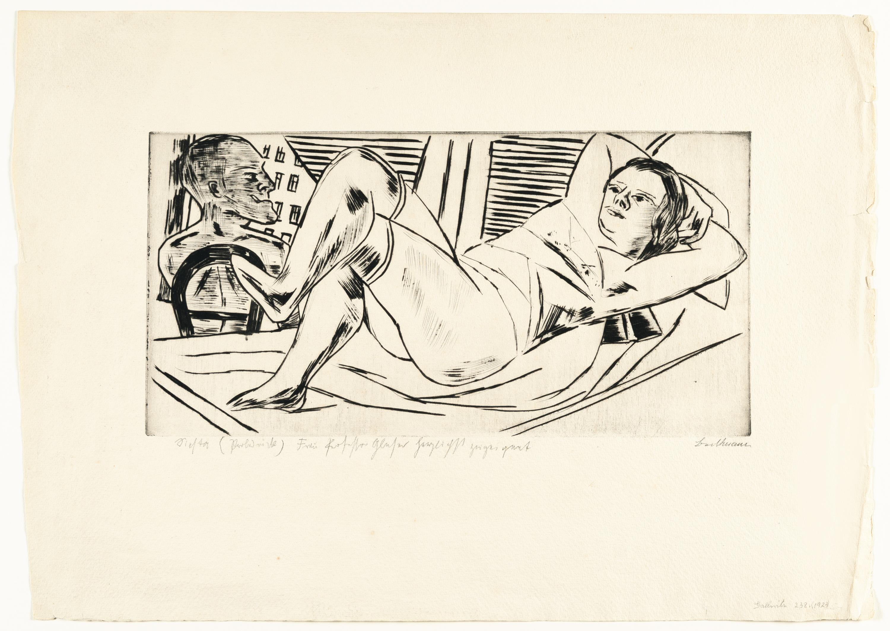 Beckmann widmet dieses Blatt Frau Glaser, der Ehefrau des bekannten Kunsthistorikers und Beckmann-Sammlers Curt Glaser (1879-1943). Möglicherweise diente diese Radierung als Vorlage für Beckmanns 1931 entstandenes Ölgemälde mit dem gleichen Titel (vgl. WVZ Göpel 353), das Max Beckmann und seine zweite Frau Mathilde von Kaufmann (genannt „Quappi“) zeigt.