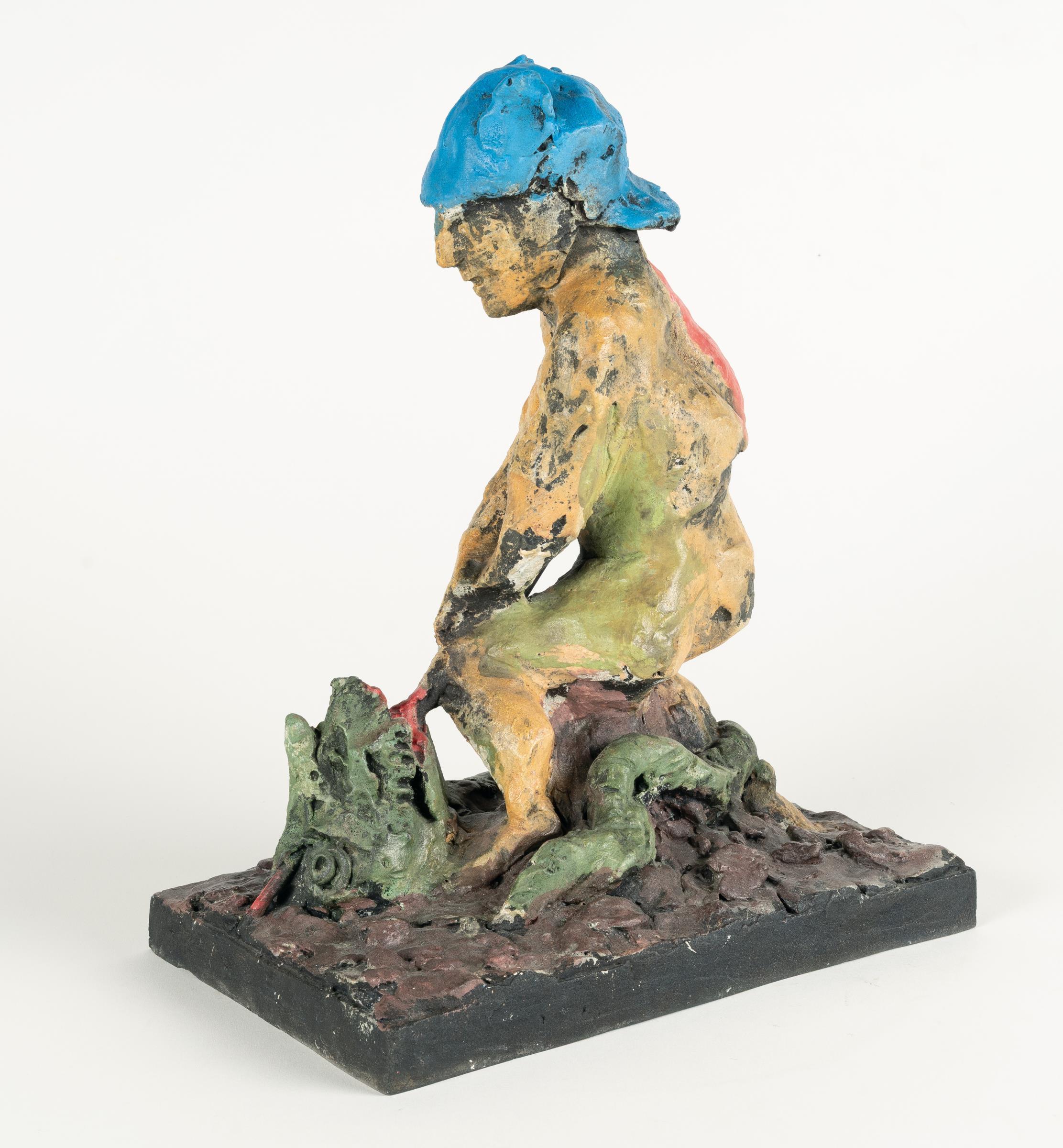 Bronze, farbig gefasst. (2023). Ca. 31,5 x 25 x 17,5 cm. Eines von 25 nummerierten Exemplaren. Mit eingeschlagenem Monogramm und dem Gießerstempel „SCHMÄKE DÜSSELDORF“ auf der Plinthe.